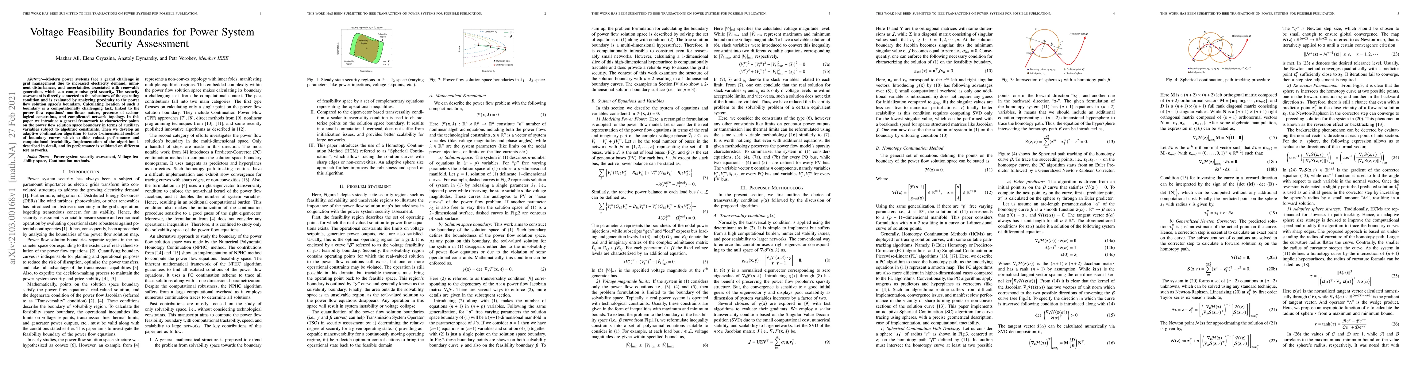 Modern power systems face a grand challenge in grid management due to increased electricity demand, imminent disturbances, and uncertainties associated with renewable generation, which can compromise grid security. The security assessment is directly connected to the robustness of the operating condition and is evaluated by analyzing proximity to the power flow solution space's boundary. Calculating location of such a boundary is a computationally challenging task, linked to the power flow equations' non-linear nature, presence of technological constraints, and complicated network topology. In this paper we introduce a general framework to characterize points on the power flow solution space boundary in terms of auxiliary variables subject to algebraic constraints. Then we develop an adaptive continuation algorithm to trace 1-dimensional sections of boundary curves which exhibits robust performance and computational tractability. Implementation of the algorithm is described in detail, and its performance is validated on different test networks.
