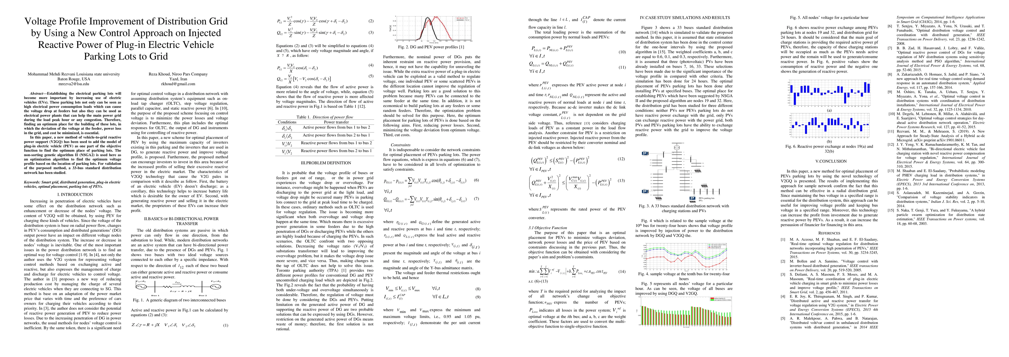 The paper introduces a novel V2GQ-based approach for optimal placement of PEVs parking lots, integrating them as reactive power sources for voltage regulation in distribution grids.
