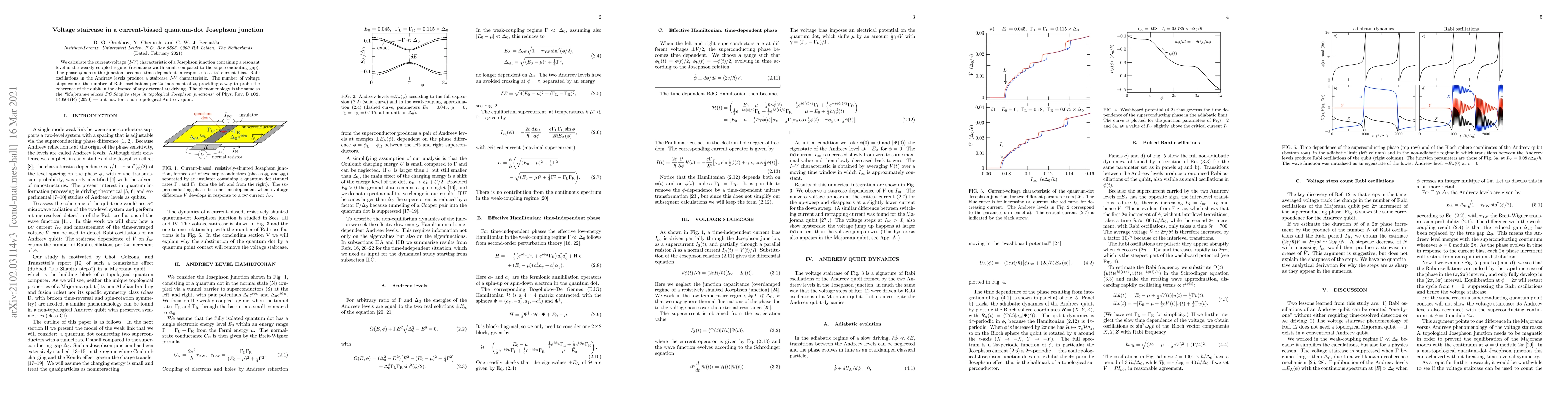 This paper investigates the current-voltage characteristics of a current-biased quantum-dot Josephson junction, revealing a staircase pattern due to Rabi oscillations in Andreev levels. The voltage steps count the number of oscillations per $2\pi$ phase increment, providing a method to probe qubit coherence without external AC driving.