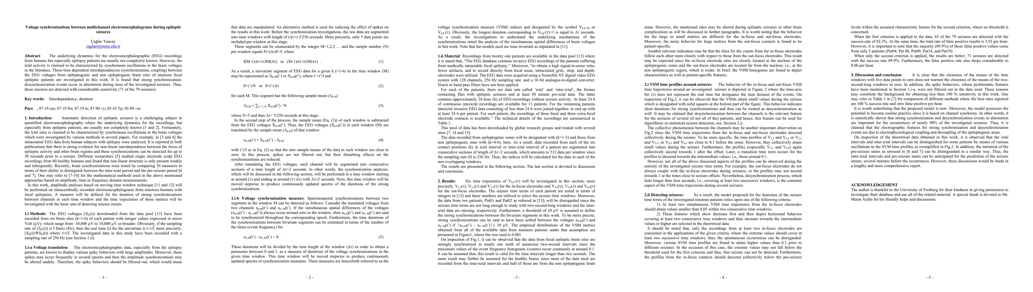 This study investigates the synchronization of EEG voltages in epilepsy patients during seizures, finding that strong synchronization and desynchronization events alternate in most seizures, allowing detection of 71 out of 79 seizures with high sensitivity.
