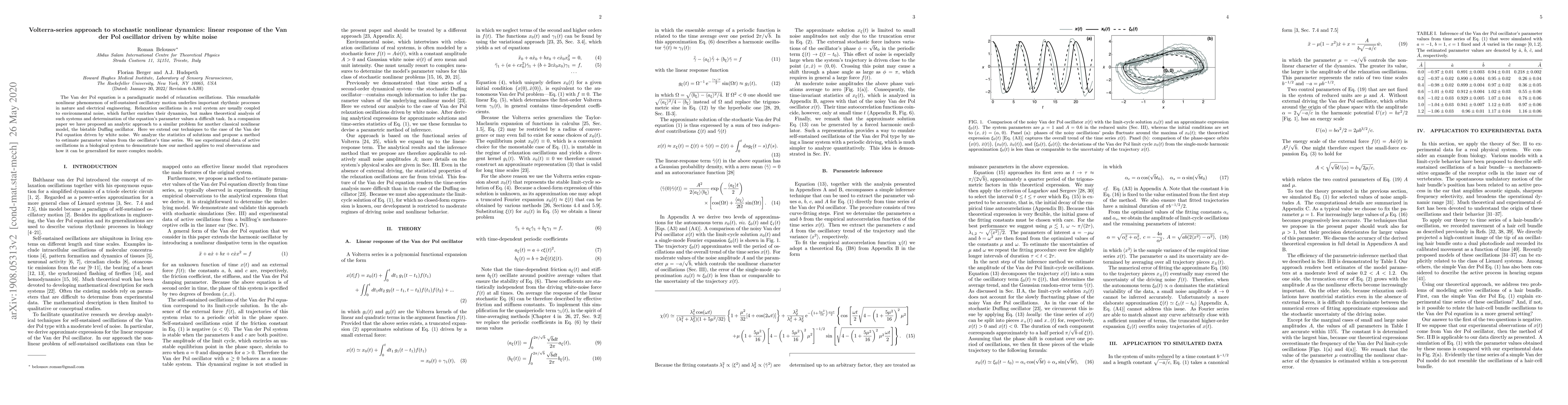 This research extends analytical techniques to study the linear response of the Van der Pol oscillator under white noise, proposing a method to estimate parameter values from time series data. The study also applies the method to biological system data to demonstrate its real-world applicability and potential for more complex models.