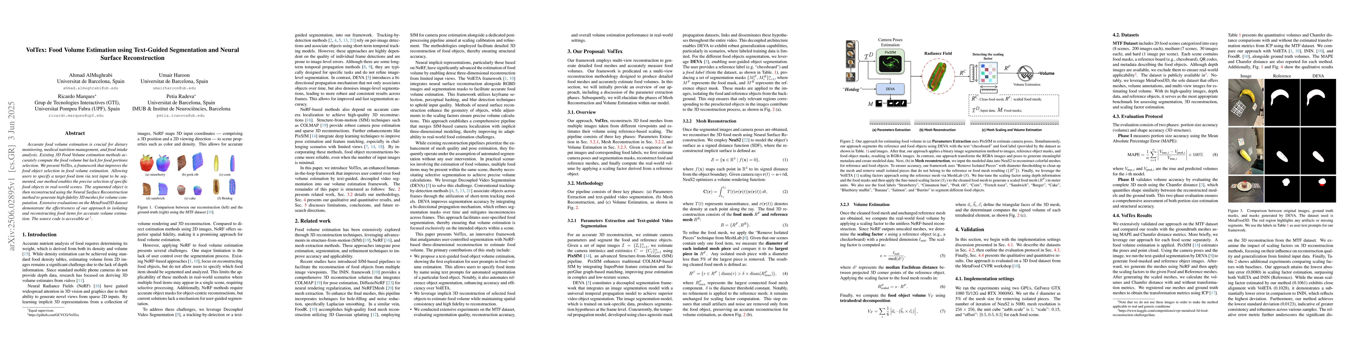 VolTex introduces a text-guided segmentation approach combined with neural surface reconstruction for precise food volume estimation.