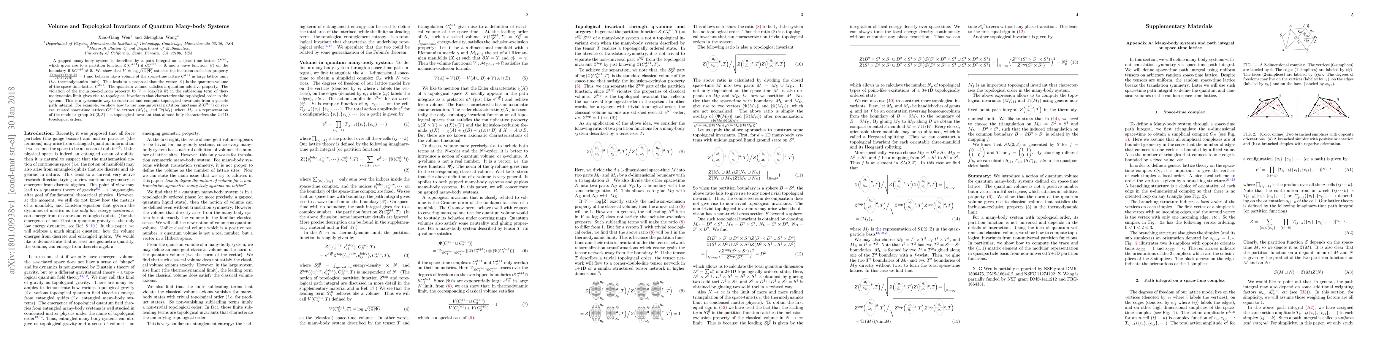 The study proposes a volume invariant that captures topological order in quantum many-body systems, showing its behavior in the thermodynamics limit and its implications for constructing topological invariants.
