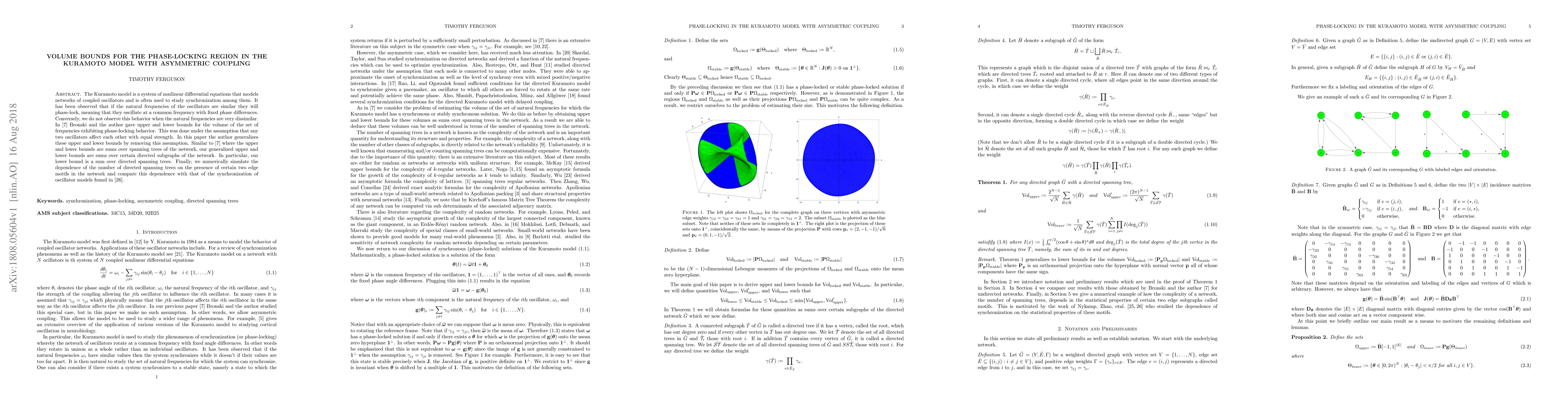 Researchers generalized volume bounds for phase-locking in the Kuramoto model with asymmetric coupling, finding that lower bounds are sums over directed spanning trees, and upper bounds depend on certain network motifs.