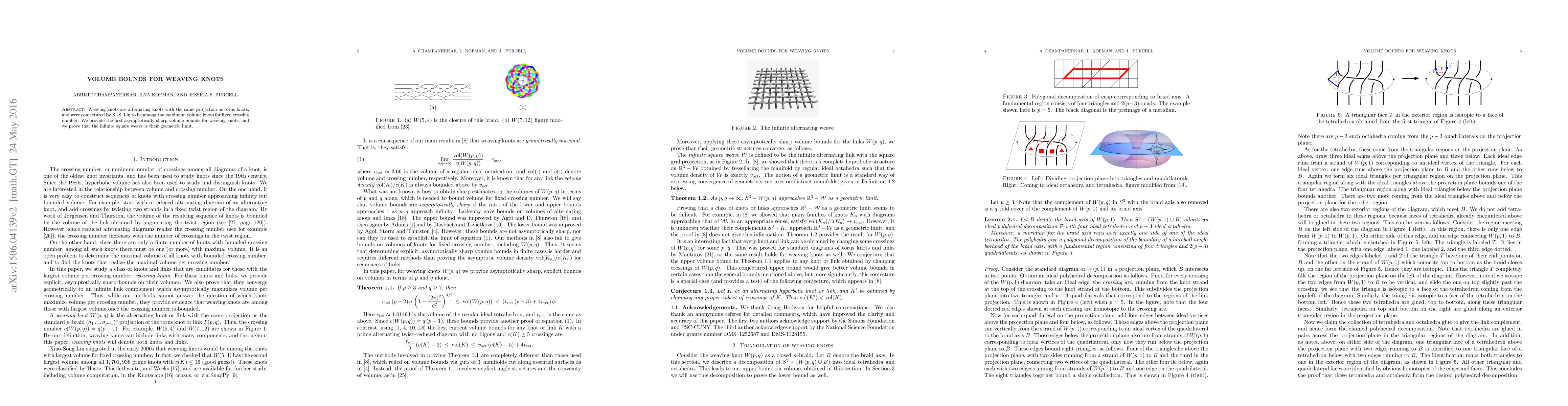 This paper establishes asymptotically correct volume bounds for weaving knots, showing they maximize volume among knots of fixed crossing number, and demonstrates that the infinite weave serves as their geometric limit.
