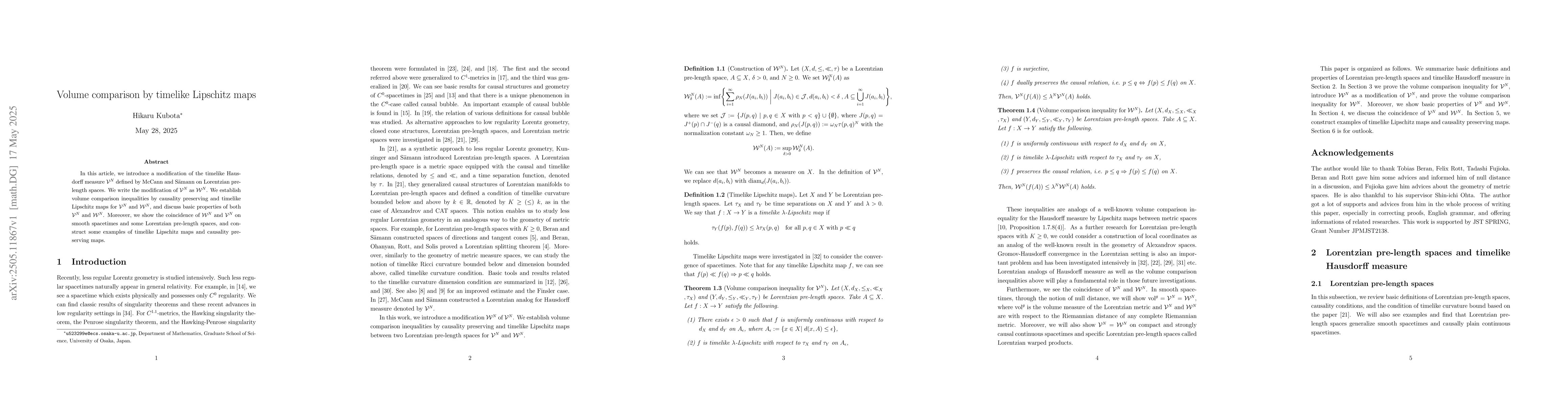 The introduction and analysis of the modified timelike Hausdorff measure WN and its comparison with VN, along with volume comparison inequalities for timelike Lipschitz maps.