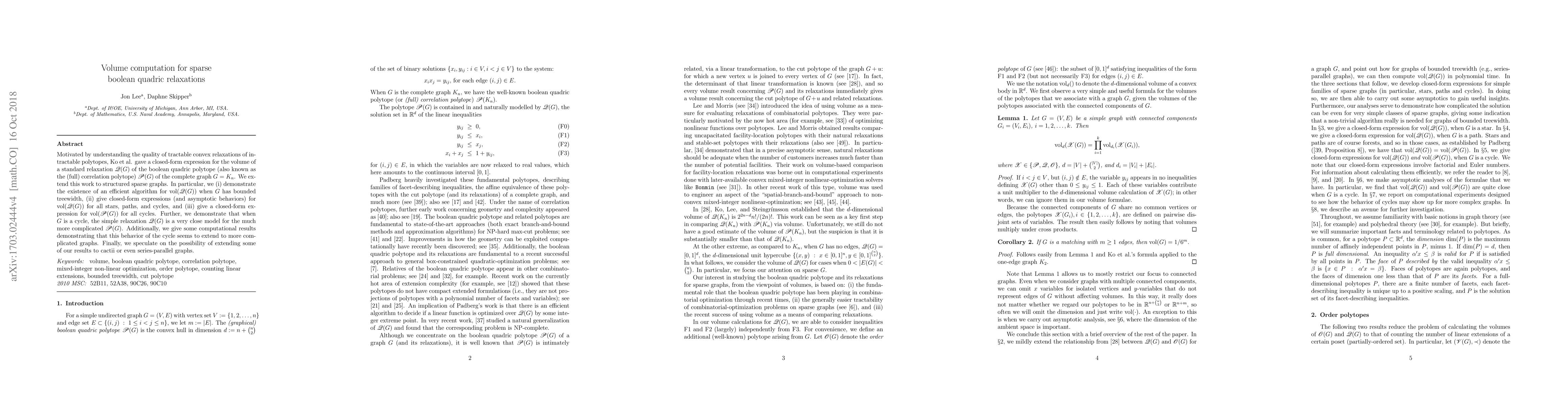 Researchers develop efficient algorithms to compute the volume of sparse boolean quadric relaxations for various graph structures, revealing that a simple relaxation can closely model complex polytopes.