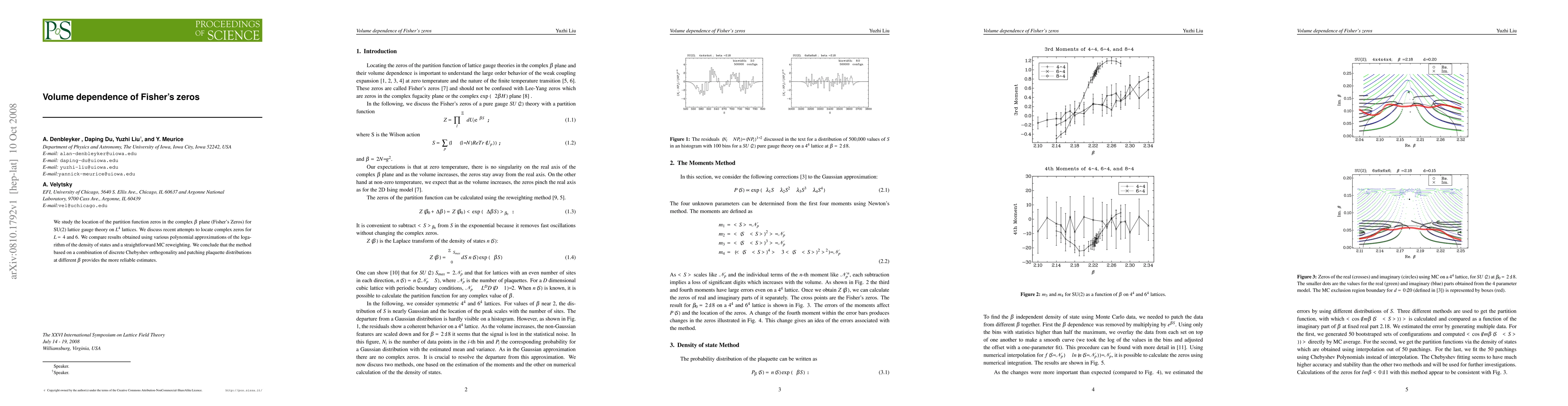 We study the location of the partition function zeros in the complex beta plane (Fisher's Zeros) for SU(2) lattice gauge theory on L^4 lattices. We discuss recent attempts to locate complex zeros for L=4 and 6. We compare results obtained using various polynomial approximations of the logarithm of the density of states and a straightforward MC reweighting. We conclude that the method based on a combination of discrete Chebyshev orthogonality and patching plaquette distributions at different beta provides the more reliable estimates.