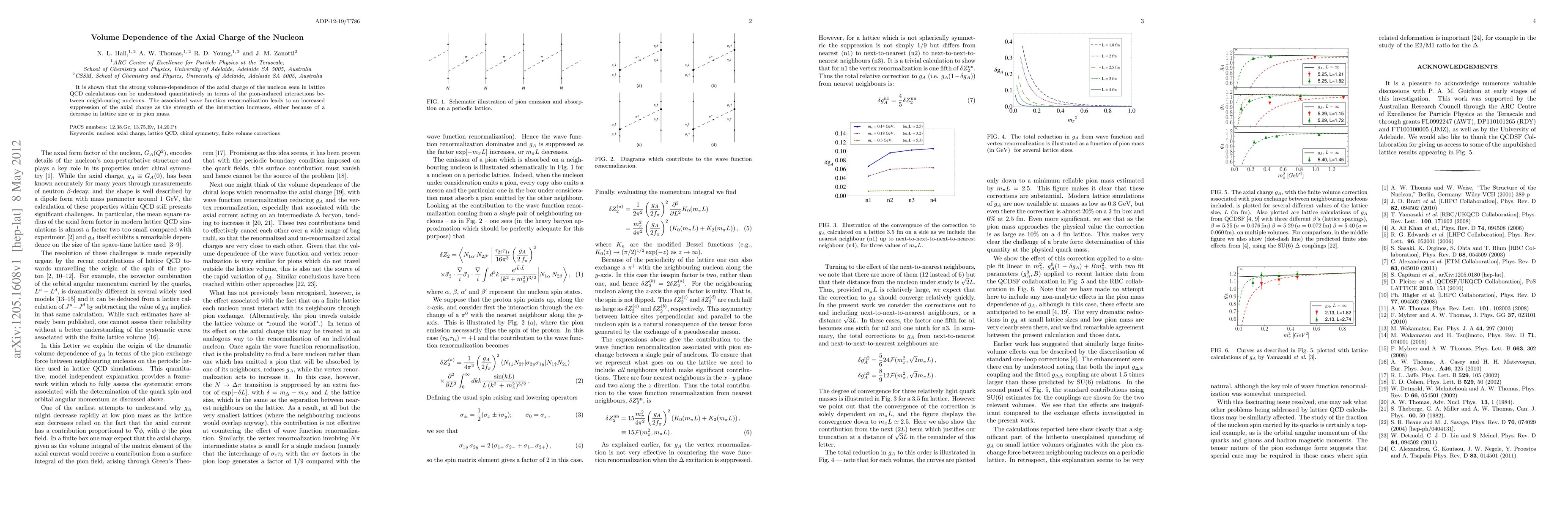 Research shows that the axial charge of nucleons is suppressed as lattice size decreases due to pion-induced interactions between neighboring nucleons.