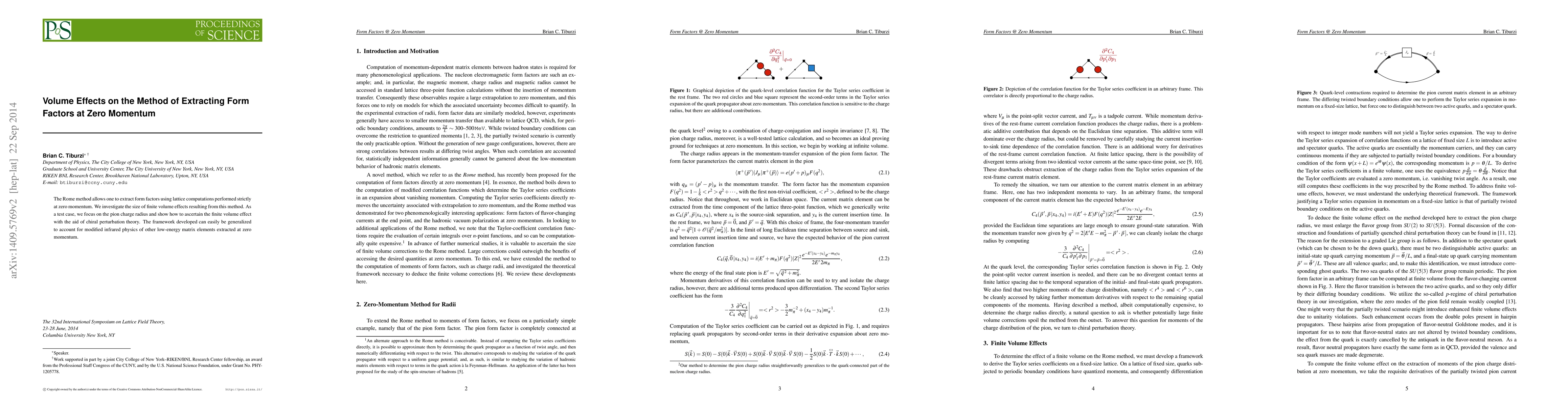 This paper examines the finite volume effects in the Rome method for extracting form factors at zero momentum, using the pion charge radius as a test case. It demonstrates how chiral perturbation theory can be used to determine these effects and suggests the framework can be extended to other low-energy matrix elements.