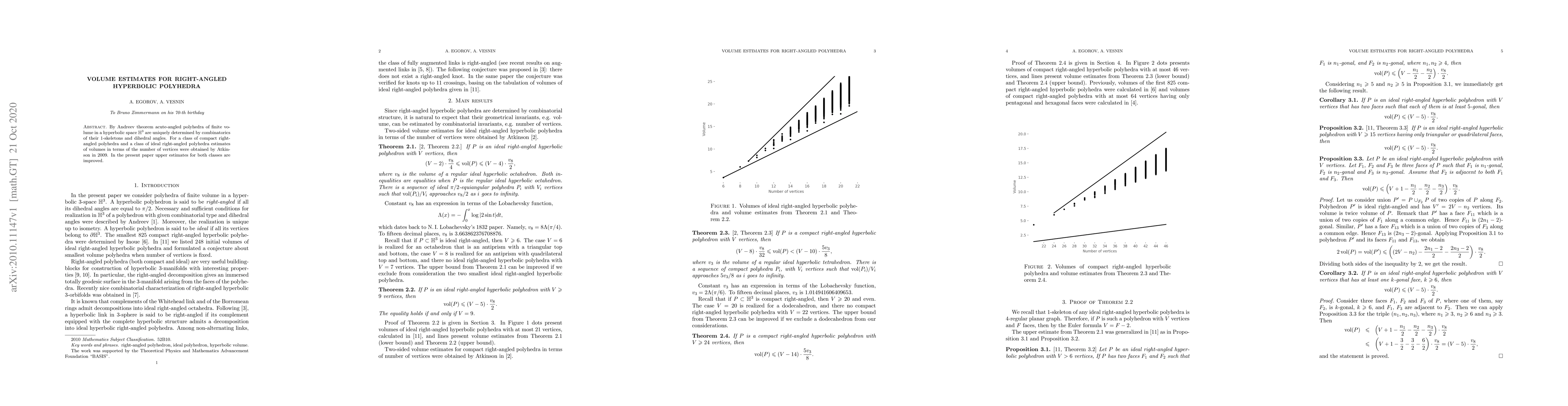 This paper improves upper volume estimates for two classes of right-angled hyperbolic polyhedra: compact and ideal, building on previous work by Atkinson in 2009. It leverages the Andreev theorem to relate volume to the polyhedra's combinatorial structures and dihedral angles.