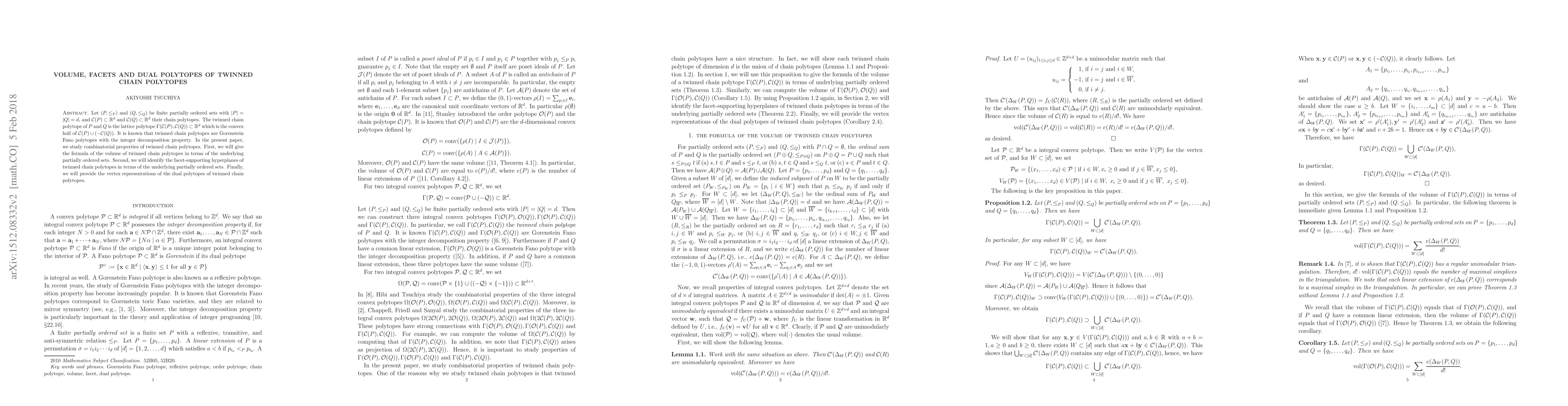This paper explores the combinatorial properties of twinned chain polytopes, deriving formulas for their volume in terms of the underlying partially ordered sets. It also identifies the facet-supporting hyperplanes and provides vertex representations for the dual polytopes.