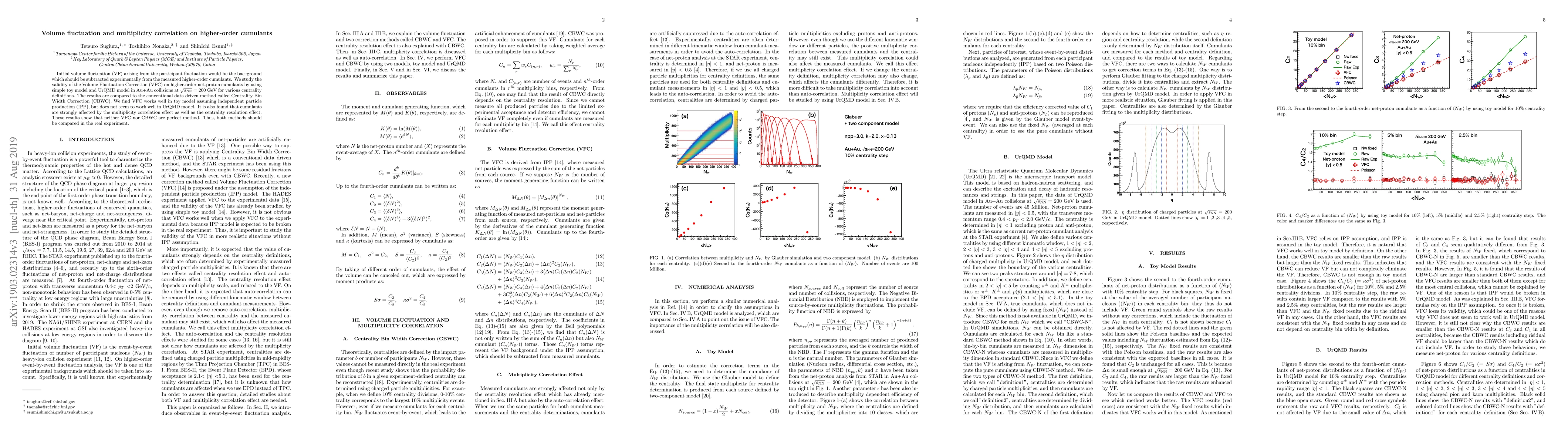 This paper investigates the Volume Fluctuation Correction (VFC) method for higher-order cumulants in Au+Au collisions, finding it effective in simple models but not in UrQMD simulations. It highlights the impact of multiplicity correlation and centrality resolution, concluding that neither VFC nor Centrality Bin Width Correction (CBWC) is a perfect method and both should be compared in real experiments.