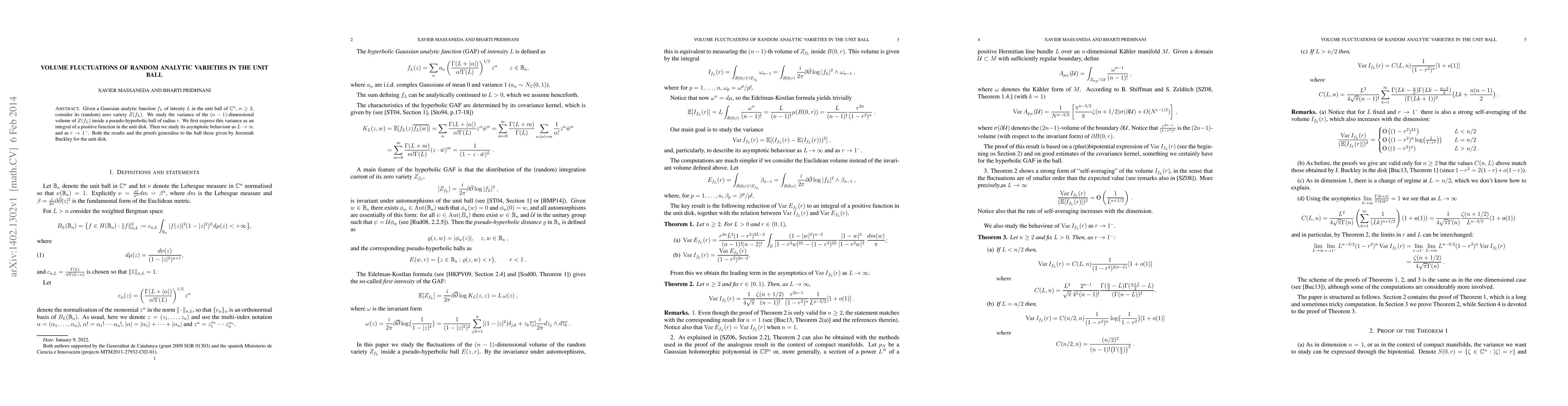 This paper investigates the variance of the $(n-1)$-dimensional volume of the random zero variety of a Gaussian analytic function within a pseudo-hyperbolic ball in $\mathbb{C}^n$. It generalizes previous results for the unit disk and examines the asymptotic behavior as the intensity and radius approach infinity and 1, respectively.