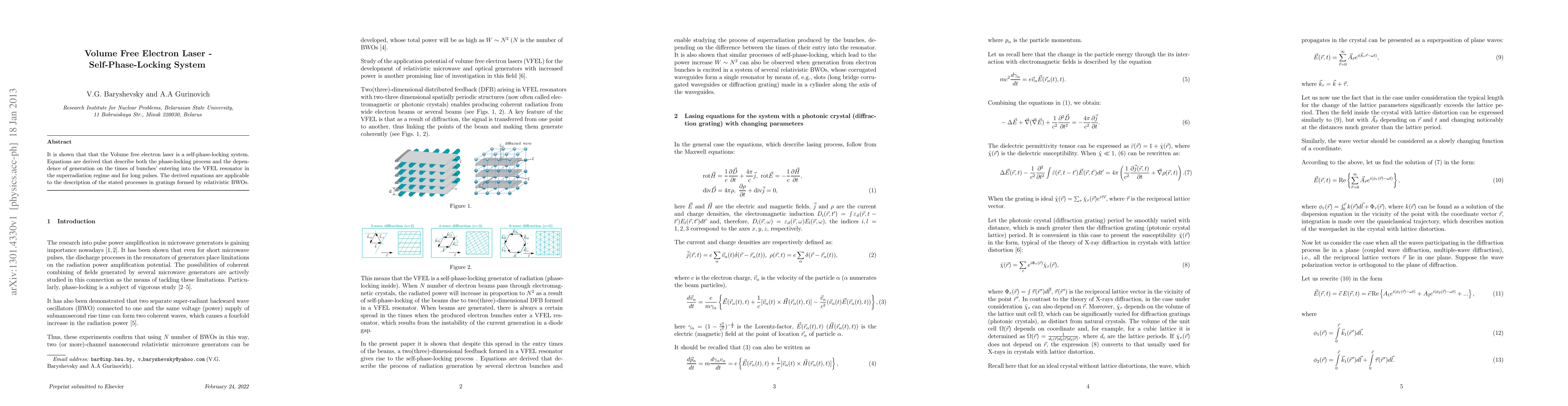 The research demonstrates that the Volume free electron laser (VFEL) functions as a self-phase-locking system, with derived equations describing both the phase-locking process and the impact of bunch entry times on generation in the superradiation regime and for long pulses. These equations are applicable to gratings formed by relativistic BWOs.