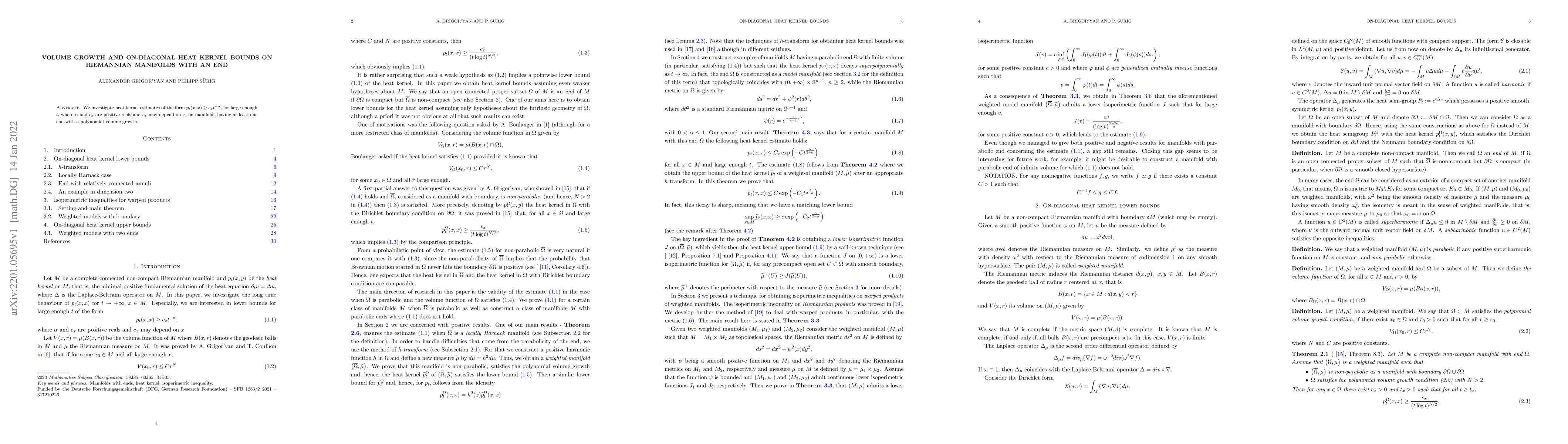 This research paper establishes bounds on heat kernel estimates for Riemannian manifolds with at least one end, showing that the heat kernel decays at least as fast as $t^{-rac{1}{2}}$ for large enough $t$.