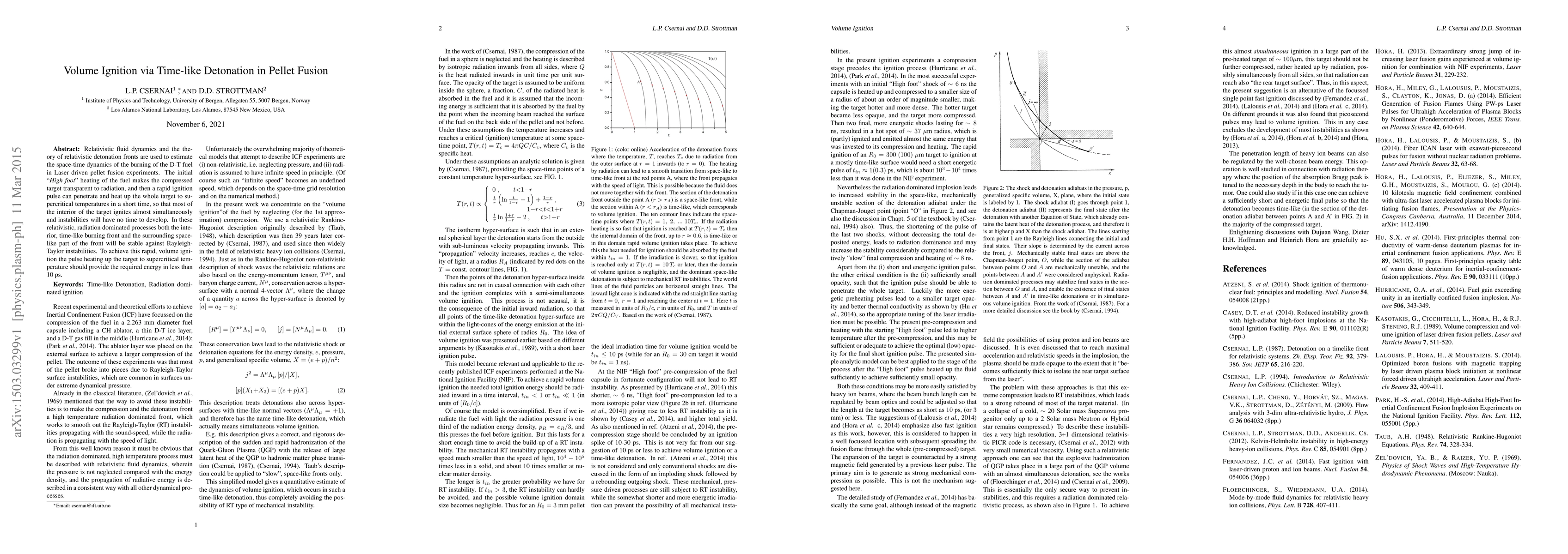 The paper discusses using relativistic fluid dynamics to predict rapid ignition in laser-driven pellet fusion. It suggests that initial intense heating followed by a quick pulse can simultaneously ignite most of the fuel target, preventing instabilities. This method is stable against Rayleigh-Taylor instabilities in relativistic, radiation-dominated processes, with the pulse needing to deliver energy in less than ~10 picoseconds for effective volume ignition.