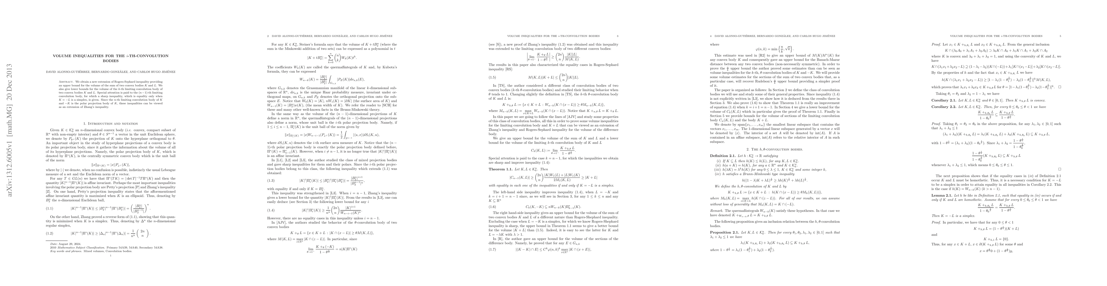 We obtain a new extension of Rogers-Shephard inequality providing an upper bound for the volume of the sum of two convex bodies $K$ and $L$. We also give lower bounds for the volume of the $k$-th limiting convolution body of two convex bodies $K$ and $L$. Special attention is paid to the $(n-1)$-th limiting convolution body, for which a sharp inequality, which is equality only when $K=-L$ is a simplex, is given. Since the $n$-th limiting convolution body of $K$ and $-K$ is the polar projection body of $K$, these inequalities can be viewed as an extension of Zhang's inequality.