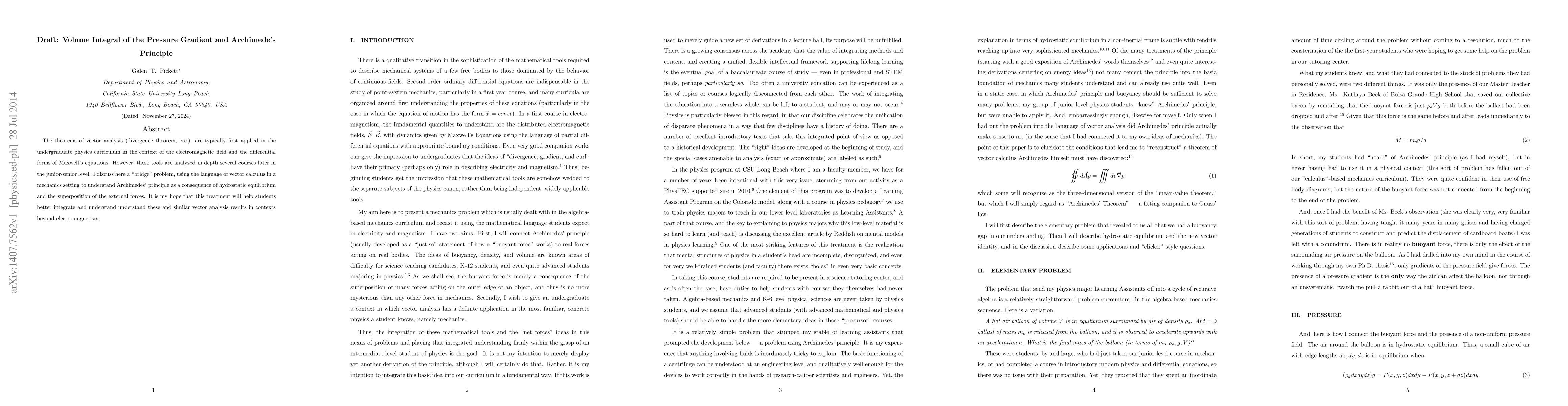 The theorems of vector analysis (divergence theorem, etc.) are typically first applied in the undergraduate physics curriculum in the context of the electromagnetic field and the differential forms of Maxwell's equations. However, these tools are analyzed in depth several courses later in the junior-senior level. I discuss here a "bridge" problem, using the language of vector calculus in a mechanics setting to understand Archimedes' principle as a consequence of hydrostatic equilibrium and the superposition of the external forces. It is my hope that this treatment will help students better integrate and understand understand these and similar vector analysis results in contexts beyond electromagnetism.