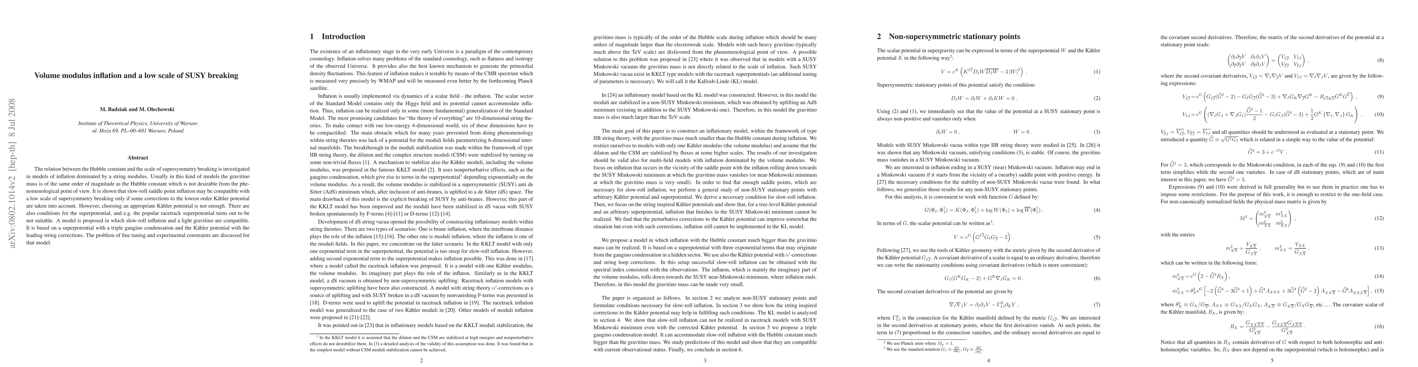 This paper investigates how slow-roll inflation can coexist with a low scale of supersymmetry breaking in models dominated by a string modulus. It proposes a model with a specific superpotential and corrected Kahler potential that reconciles these conditions, addressing fine-tuning and experimental constraints.
