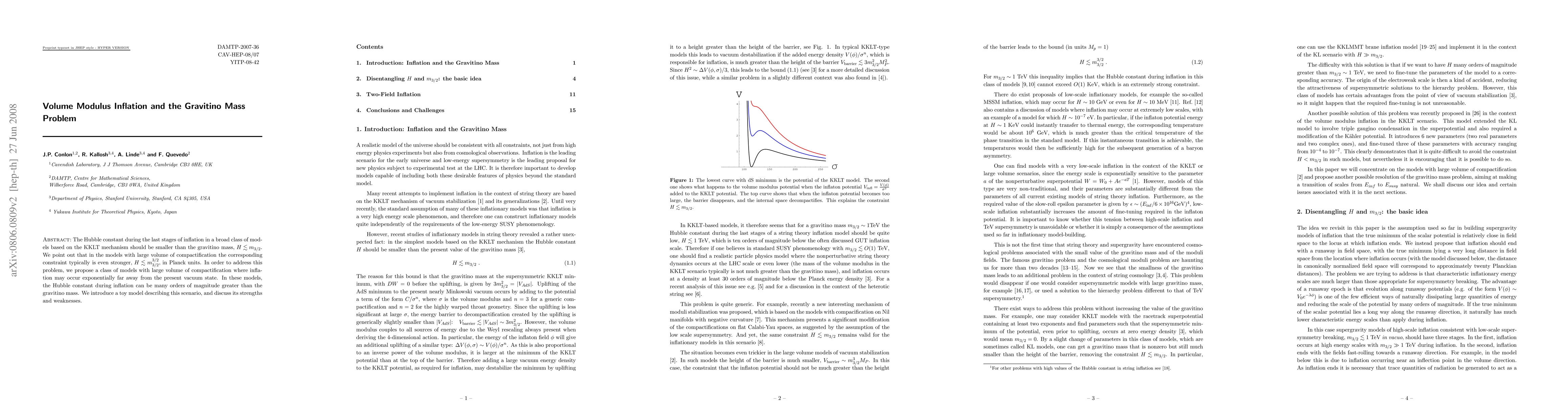 This paper addresses the gravitino mass problem in models with large volume compactification during inflation, proposing a new class of models where inflation occurs far from the current vacuum state, allowing the Hubble constant to exceed the gravitino mass significantly. A toy model is introduced to illustrate this scenario, highlighting its potential advantages and limitations.