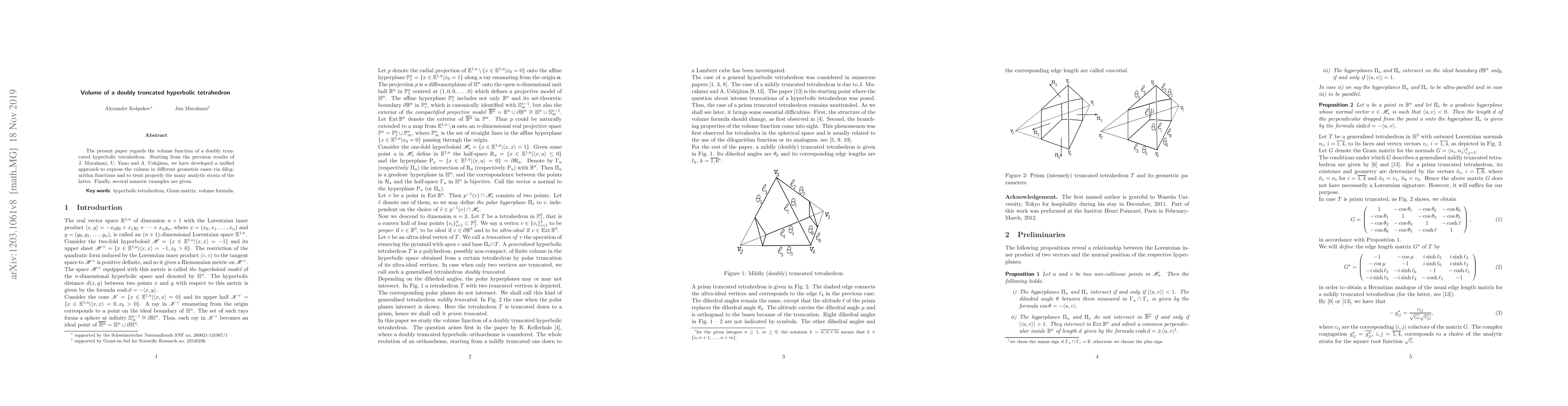 This paper develops a unified approach to calculate the volume of a doubly truncated hyperbolic tetrahedron, utilizing dilogarithm functions and addressing the various analytic cases, building on prior work by Murakami, Yano, and Ushijima, and includes numerical examples.