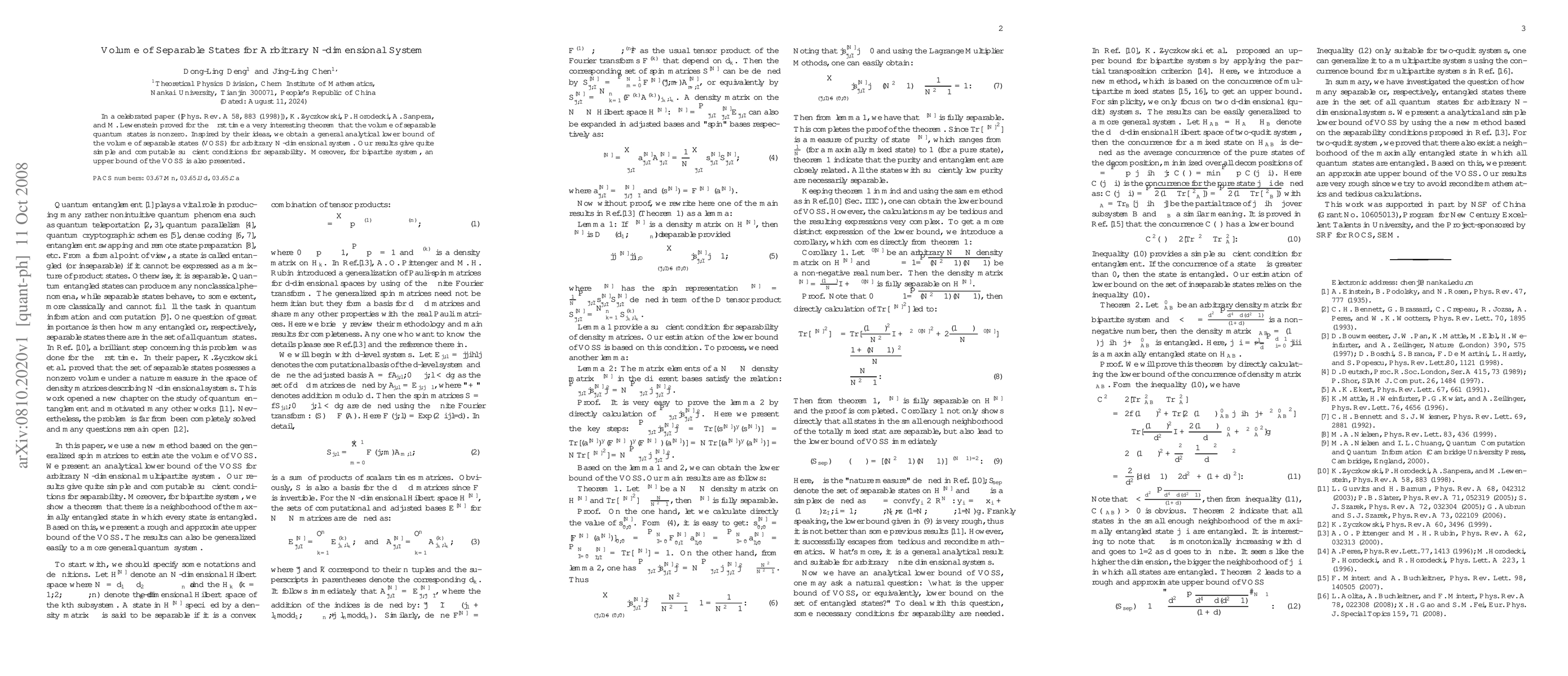 In a celebrated paper ([Phys. Rev. A 58, 883 (1998)]), K. Zyczkowski, P. Horodecki, A. Sanpera,and M. Lewenstein proved for the frst time a very interesting theorem that the volume of separable quantum states is nonzero. Inspired by their ideas, we obtain a general analytical lower bound of the volume of separable states (VOSS) for arbitrary N-dimensional system. Our results give quite simple and computable suffcient conditions for separability. Moreover, for bipartite system, an upper bound of the VOSS is also presented.
