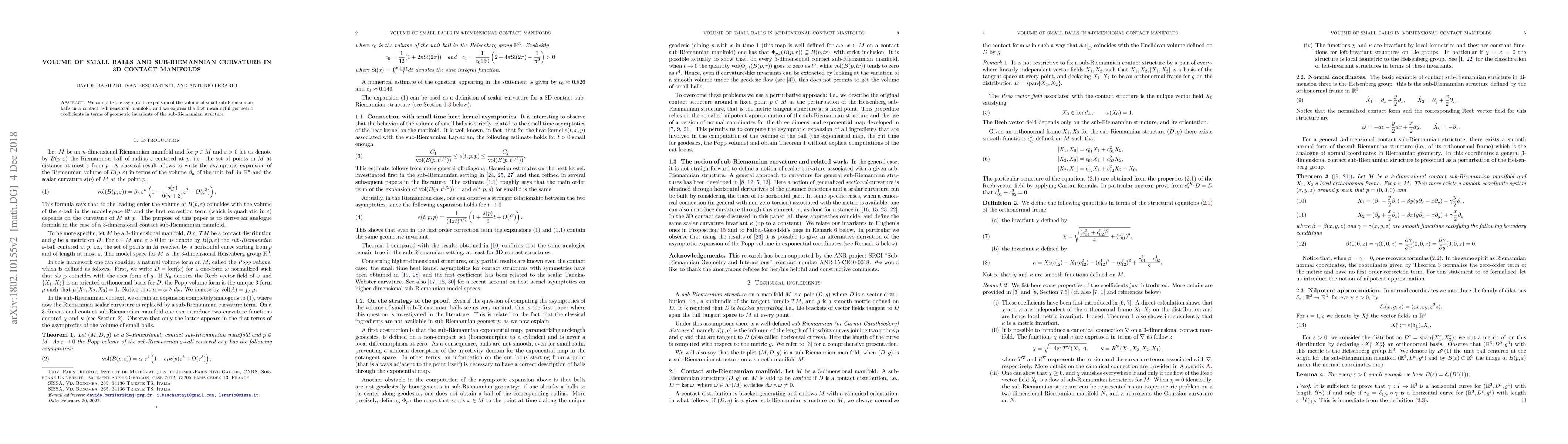 We compute the asymptotic expansion of the volume of small sub-Riemannian balls in a contact 3-dimensional manifold, and we express the first meaningful geometric coefficients in terms of geometric invariants of the sub-Riemannian structure