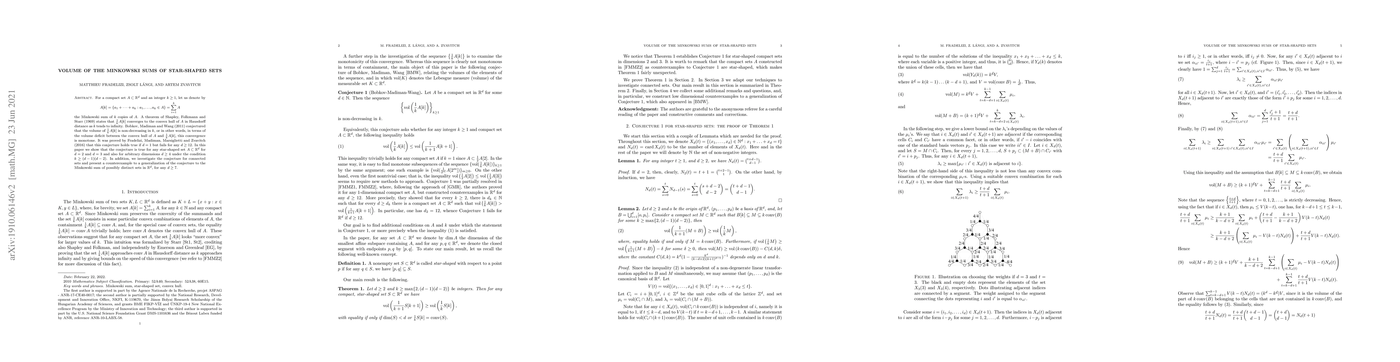 This paper proves that the conjectured non-decreasing volume of Minkowski sums of star-shaped sets holds true for dimensions $d=2$, $d=3$, and $d \geq 4$ when $k \geq (d-1)(d-2)$. It also provides a counterexample showing the conjecture fails for connected sets and for Minkowski sums of possibly distinct sets in dimensions $d \geq 7$.