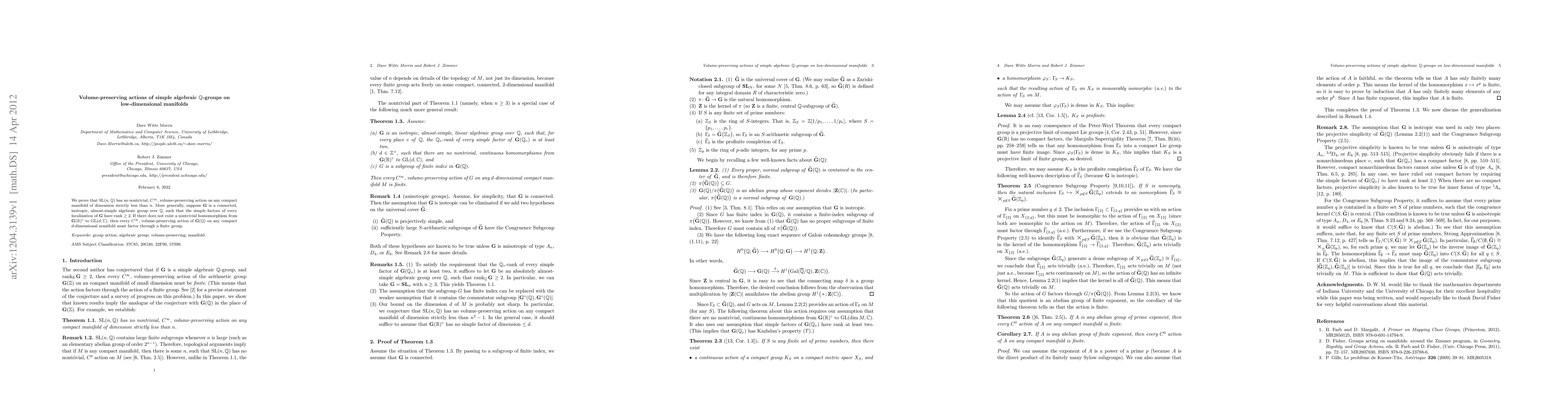 Researchers prove that certain algebraic groups cannot have nontrivial volume-preserving actions on low-dimensional manifolds, with implications for the study of symplectic geometry and group actions.