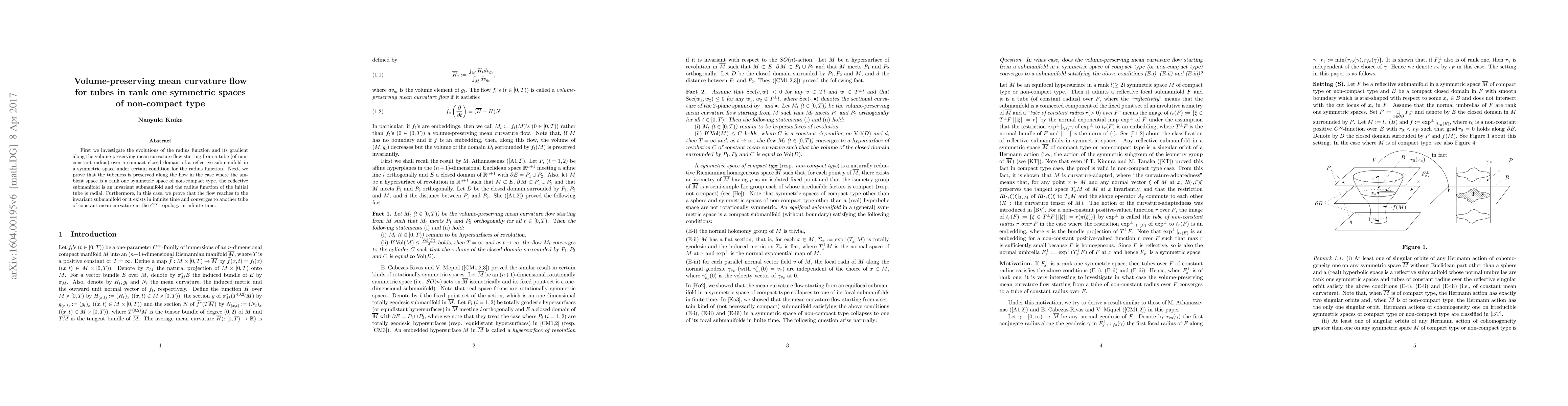 This paper studies the volume-preserving mean curvature flow of tubes in rank one symmetric spaces of non-compact type, proving tubeness preservation and showing that the flow either reaches an invariant submanifold or converges to another tube with constant mean curvature.