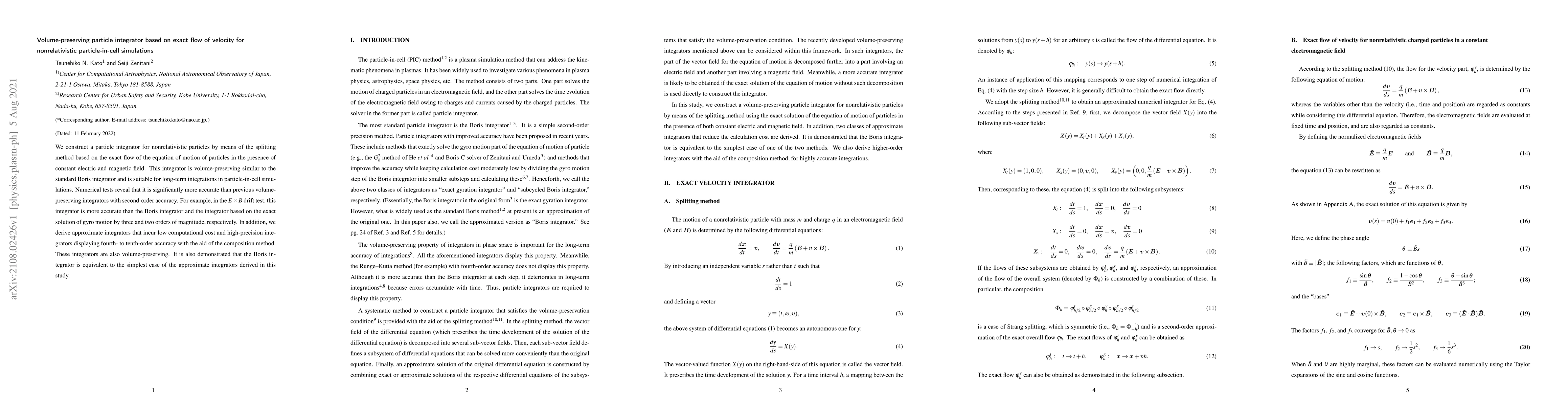 This paper introduces a new volume-preserving particle integrator based on the exact flow of particle motion equations for nonrelativistic particle-in-cell simulations, showing significantly higher accuracy than previous methods, especially in $E \times B$ drift tests. It also presents approximate and high-precision integrators with various orders of accuracy.