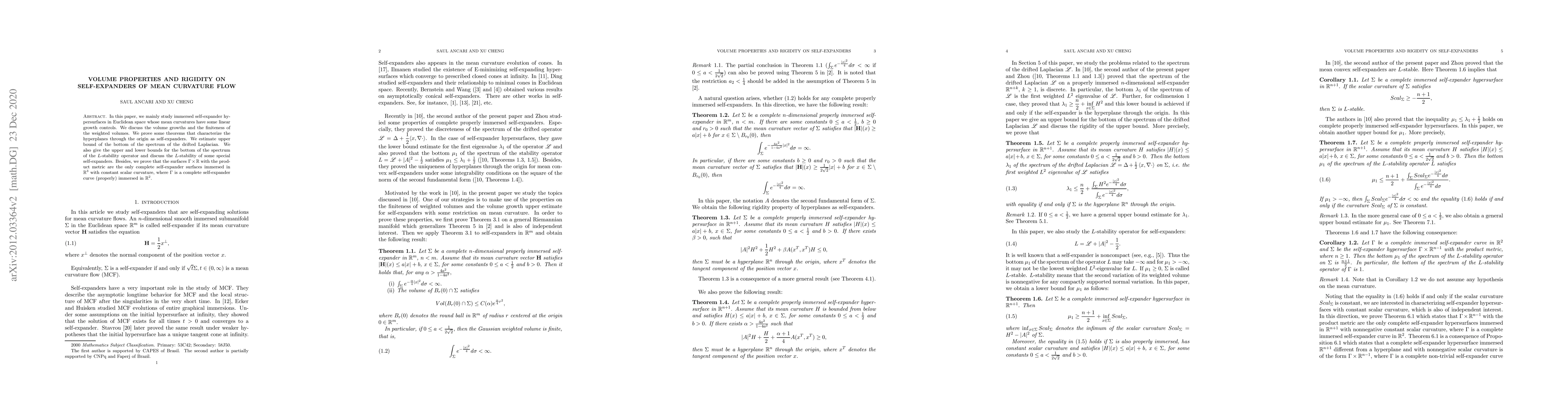 This paper investigates the properties of self-expander hypersurfaces in Euclidean space under mean curvature flow, focusing on volume growth and rigidity. It establishes theorems for hyperplanes as self-expanders, estimates spectral bounds for stability operators, and proves that only surfaces of the form $\Gamma\times\mathbb{R}$ with constant scalar curvature are complete self-expanders in $\mathbb{R}^3$.