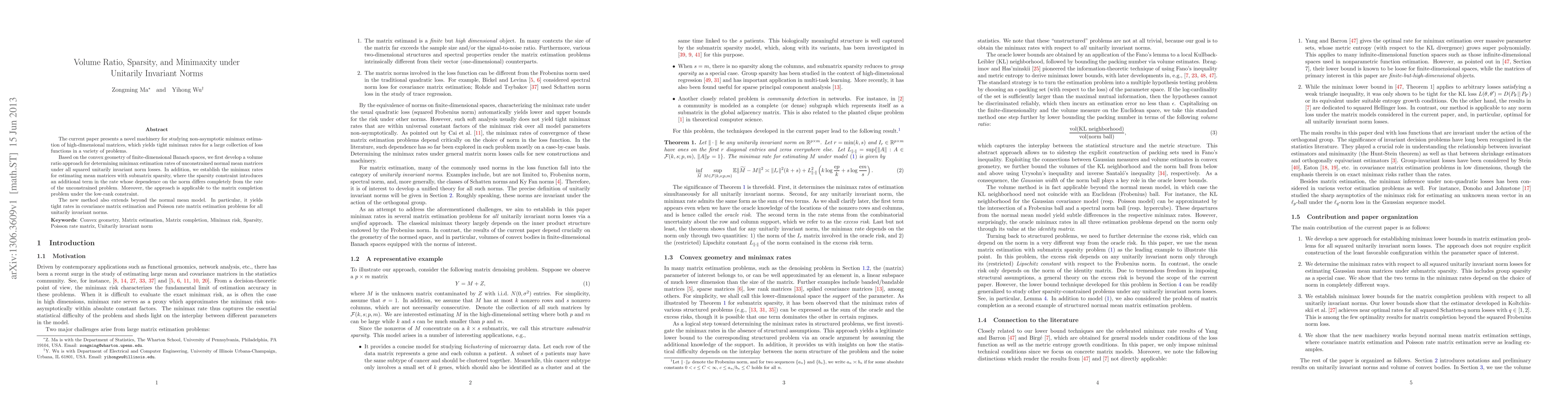 This paper develops a novel volume ratio approach grounded in convex geometry for determining minimax estimation rates of high-dimensional matrices under various unitarily invariant norm losses. It establishes tight minimax rates for normal mean matrices and those with submatrix sparsity, extending the method to matrix completion, covariance matrix estimation, and Poisson rate matrix estimation.