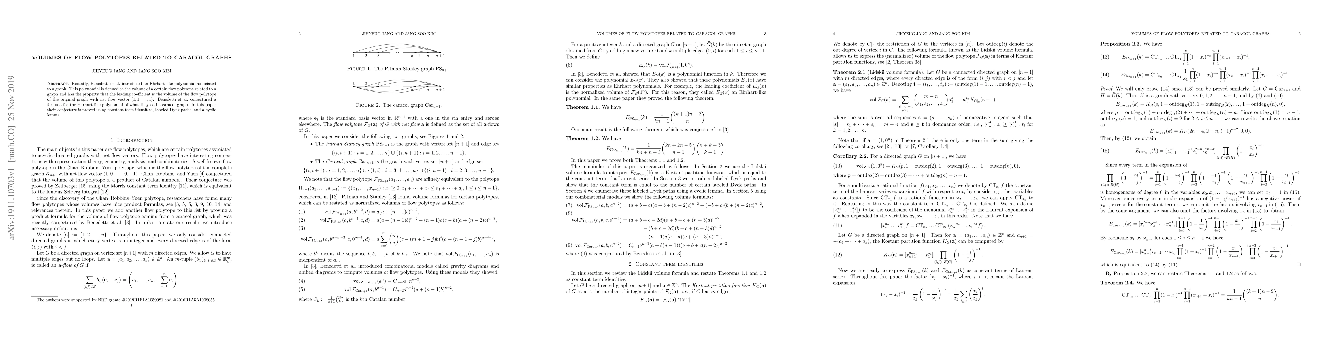 Recently, Benedetti et al. introduced an Ehrhart-like polynomial associated to a graph. This polynomial is defined as the volume of a certain flow polytope related to a graph and has the property that the leading coefficient is the volume of the flow polytope of the original graph with net flow vector $(1,1,\dots,1)$. Benedetti et al. conjectured a formula for the Ehrhart-like polynomial of what they call a caracol graph. In this paper their conjecture is proved using constant term identities, labeled Dyck paths, and a cyclic lemma.