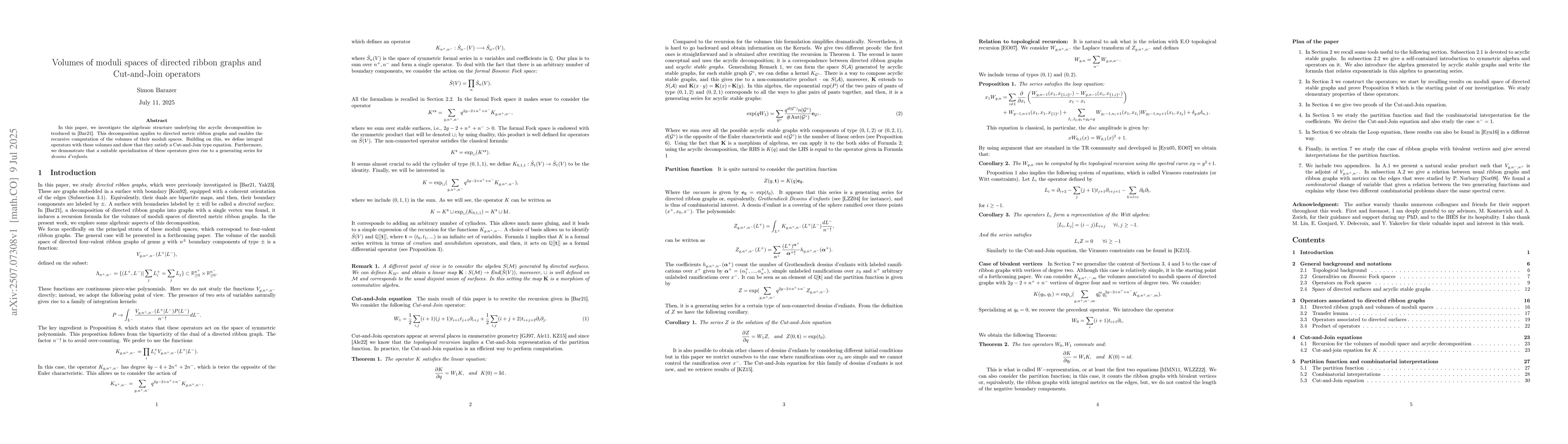 In this paper, we investigate the algebraic structure underlying the acyclic decomposition. This decomposition applies to directed metric ribbon graphs and enables the recursive computation of the volumes of their moduli spaces. Building on this, we define integral operators with these volumes and show that they satisfy a Cut-and-Join type equation. Furthermore, we demonstrate that a suitable specialization of these operators gives rise to a generating series for \textit{dessins d'enfants}.