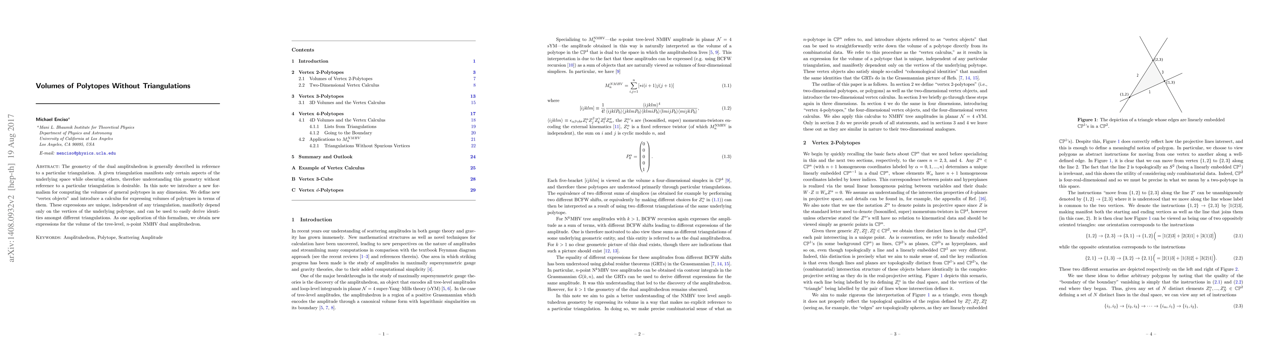 Researchers introduced a new formalism to compute volumes of polytopes in any dimension without referencing specific triangulations, providing unique and independent expressions based on polytope vertices.