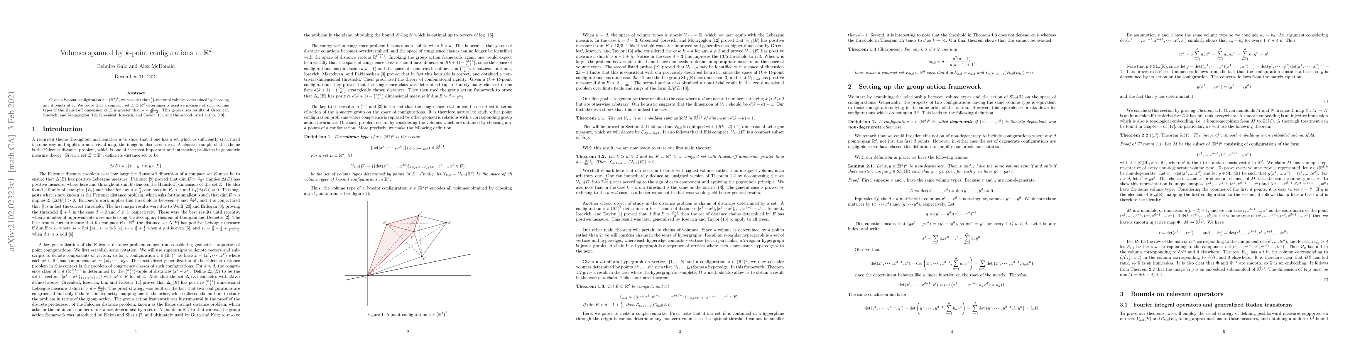 This paper proves that a compact set $E\subset \mathbb{R}^d$ determines a positive measure of volume types from $k$-point configurations if its Hausdorff dimension exceeds $d-\frac{d-1}{2k-d}$. This extends previous results by Greenleaf, Iosevich, Mourgoglou, and others.