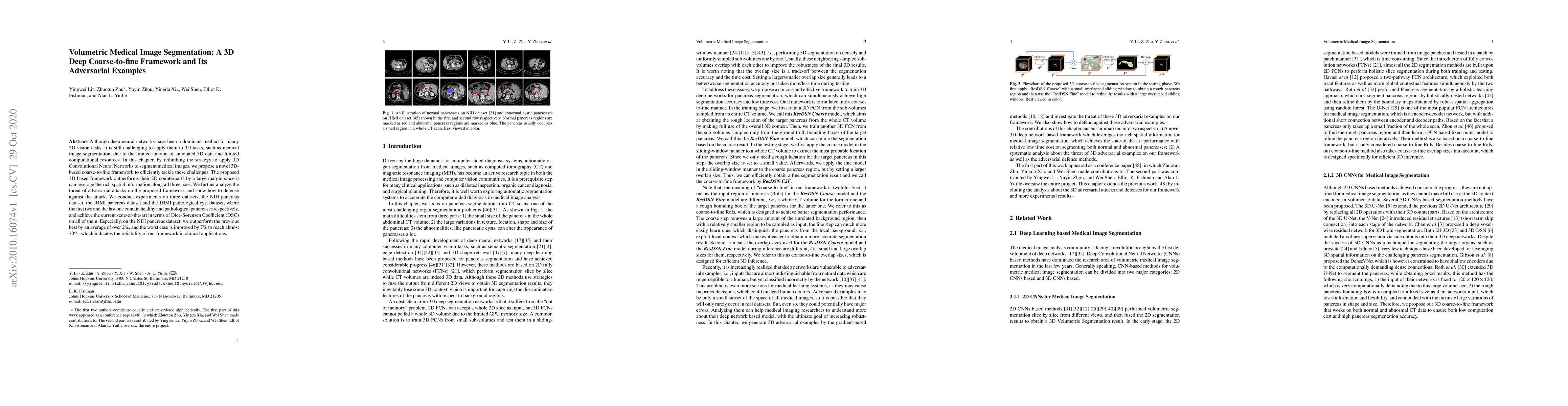 This paper proposes a novel 3D deep coarse-to-fine framework for volumetric medical image segmentation, achieving state-of-the-art results on several datasets. It also addresses adversarial attacks and provides effective defense mechanisms.