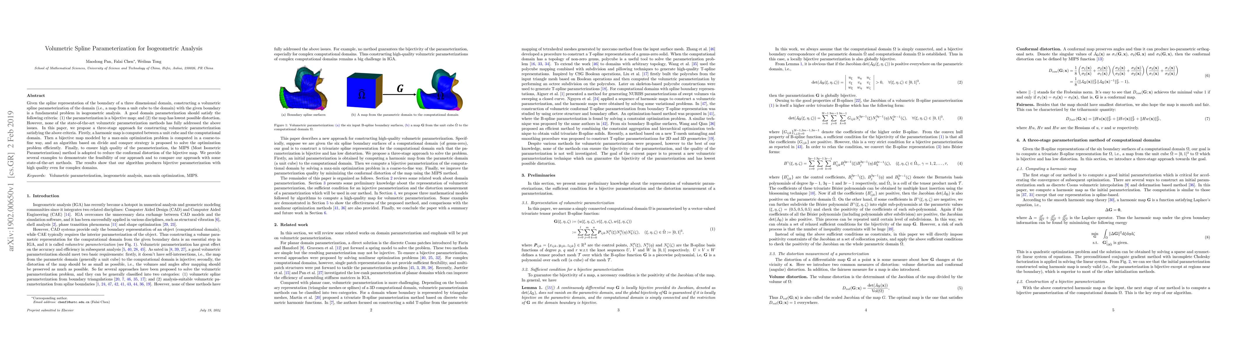 Researchers propose a three-stage approach to construct volumetric spline parameterization for isogeometric analysis, ensuring bijectivity and low distortion with high-quality results even for complex domains.
