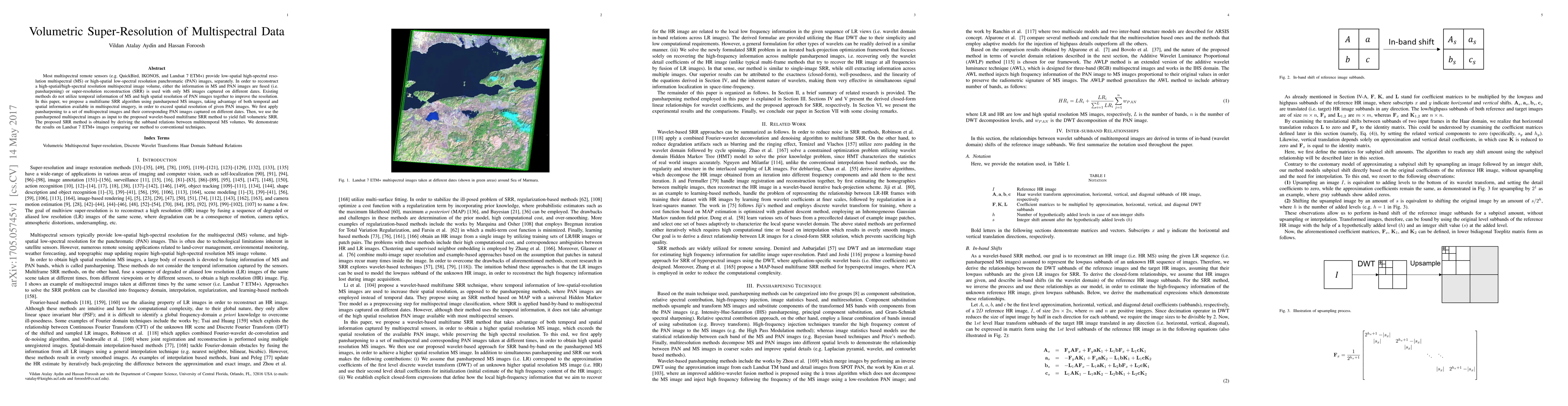 Most multispectral remote sensors (e.g. QuickBird, IKONOS, and Landsat 7 ETM+) provide low-spatial high-spectral resolution multispectral (MS) or high-spatial low-spectral resolution panchromatic (PAN) images, separately. In order to reconstruct a high-spatial/high-spectral resolution multispectral image volume, either the information in MS and PAN images are fused (i.e. pansharpening) or super-resolution reconstruction (SRR) is used with only MS images captured on different dates. Existing methods do not utilize temporal information of MS and high spatial resolution of PAN images together to improve the resolution. In this paper, we propose a multiframe SRR algorithm using pansharpened MS images, taking advantage of both temporal and spatial information available in multispectral imagery, in order to exceed spatial resolution of given PAN images. We first apply pansharpening to a set of multispectral images and their corresponding PAN images captured on different dates. Then, we use the pansharpened multispectral images as input to the proposed wavelet-based multiframe SRR method to yield full volumetric SRR. The proposed SRR method is obtained by deriving the subband relations between multitemporal MS volumes. We demonstrate the results on Landsat 7 ETM+ images comparing our method to conventional techniques.