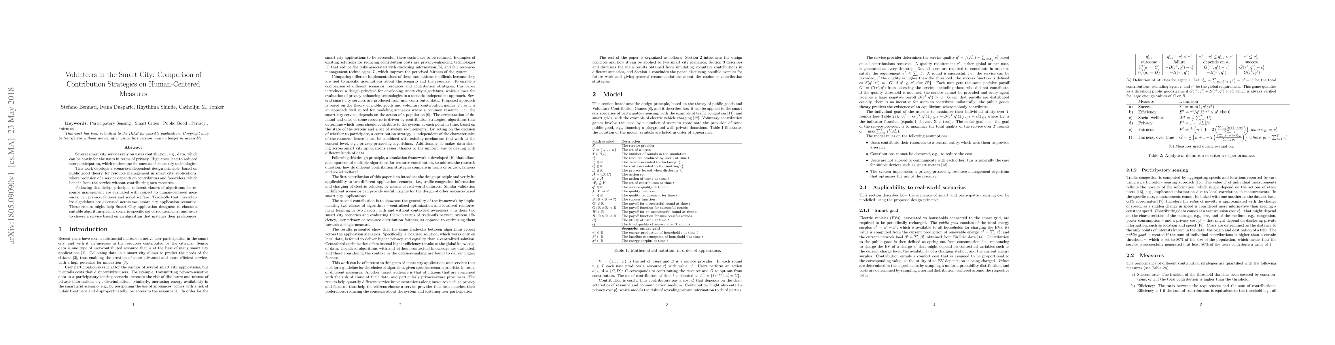 Several smart city services rely on users contribution, e.g., data, which can be costly for the users in terms of privacy. High costs lead to reduced user participation, which undermine the success of smart city technologies. This work develops a scenario-independent design principle, based on public good theory, for resource management in smart city applications, where provision of a service depends on contributors and free-riders, which benefit from the service without contributing own resources. Following this design principle, different classes of algorithms for resource management are evaluated with respect to human-centered measures, i.e., privacy, fairness and social welfare. Trade-offs that characterize algorithms are discussed across two smart city application scenarios. These results might help Smart City application designers to choose a suitable algorithm given a scenario-specific set of requirements, and users to choose a service based on an algorithm that matches their preferences.