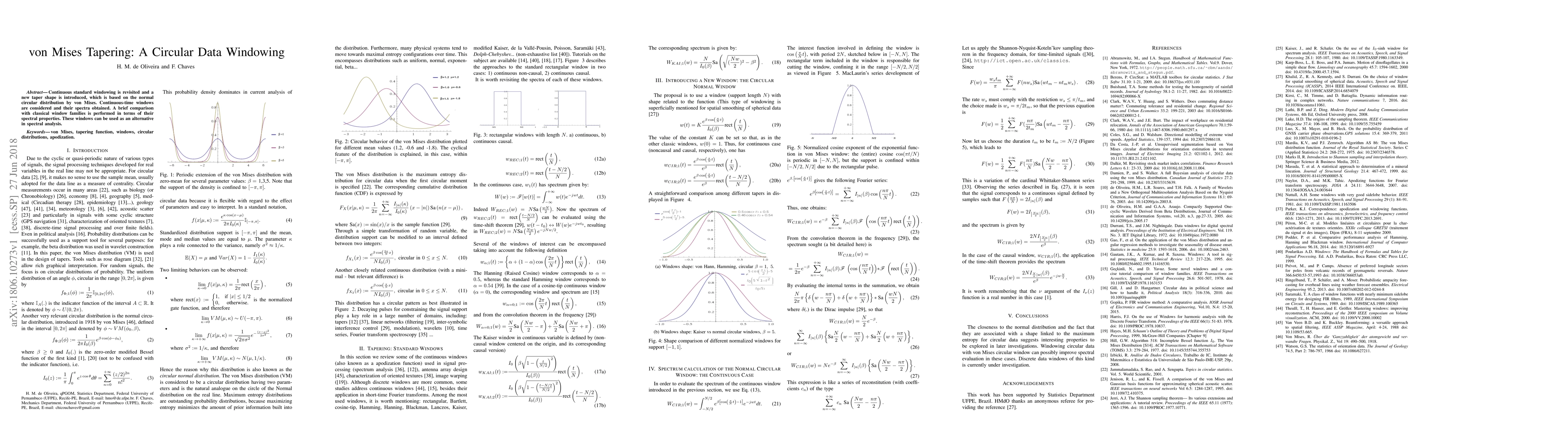 Researchers introduce a new taper shape based on von Mises' normal circular distribution for continuous-time windows, offering an alternative to classical window families in spectral analysis.