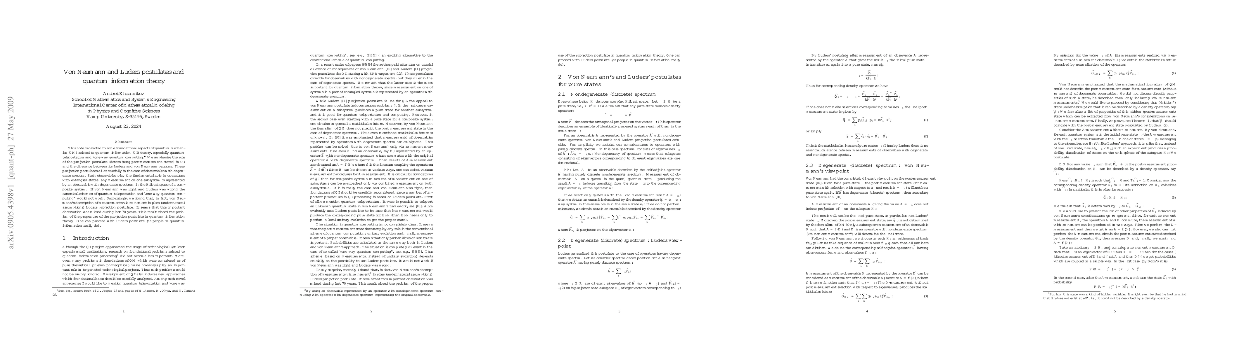 This paper explores the foundational aspects of quantum mechanics related to quantum information theory, focusing on quantum teleportation and "one-way quantum computing." It highlights the differences between von Neumann and Lüders projection postulates, ultimately showing that von Neumann's description implies Lüders' postulate, thus resolving the debate over their proper use in quantum information theory.