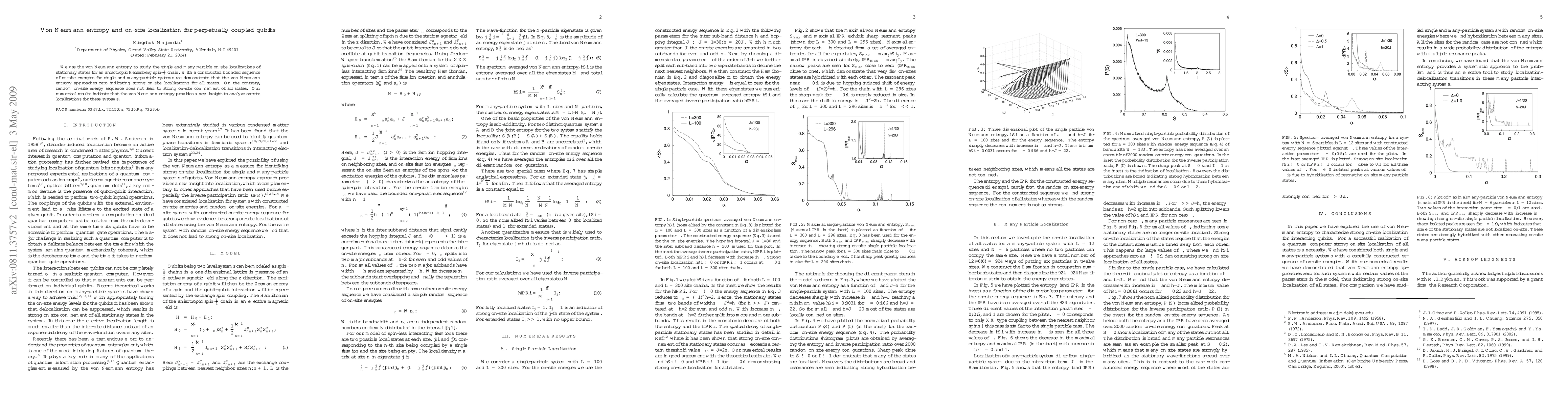 The paper introduces a method to use von Neumann entropy for analyzing on-site localizations in perpetually coupled qubits, demonstrating its effectiveness with a constructed on-site energy sequence.