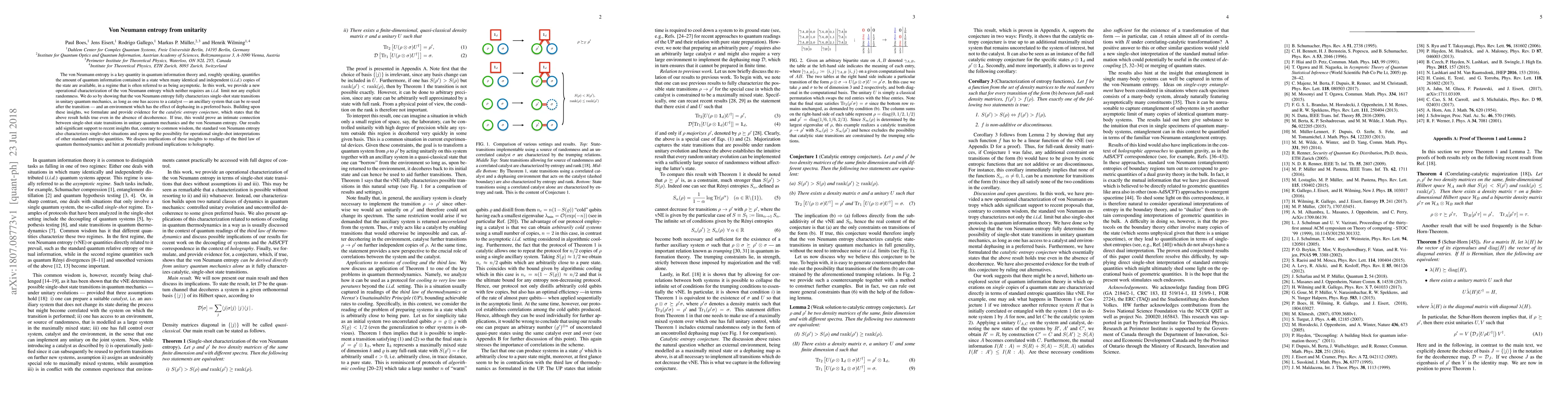 This paper presents a novel operational characterization of the von Neumann entropy in unitary quantum mechanics, showing it characterizes single-shot state transitions using a catalyst and dephasing, and proposes the catalytic entropy conjecture, indicating a strong link between unitary mechanics and entropy without decoherence. Implications extend to quantum thermodynamics and holography.
