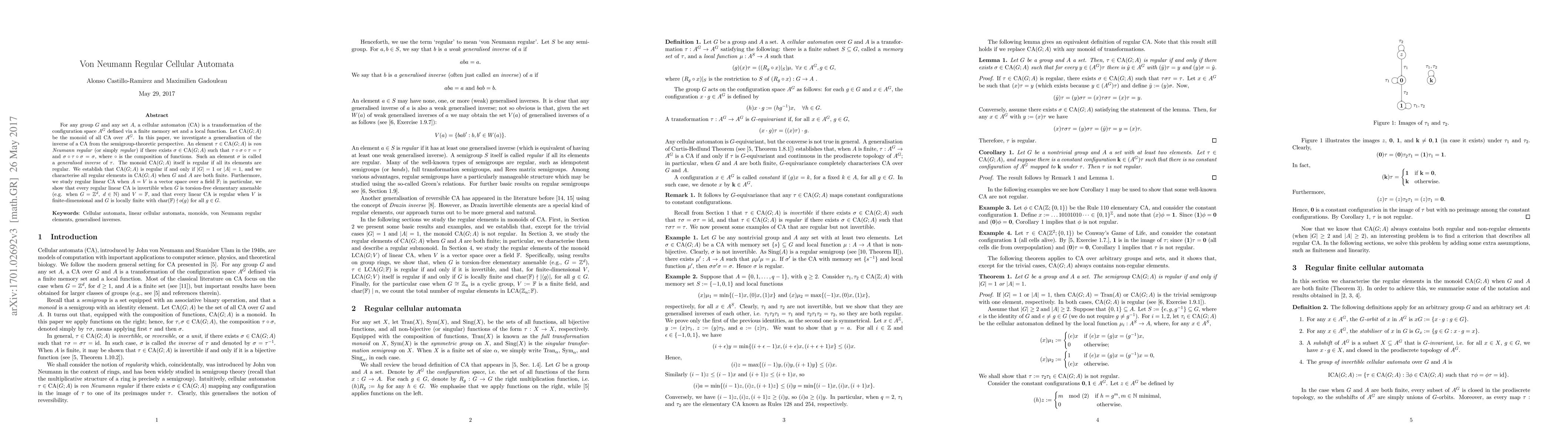 For any group $G$ and any set $A$, a cellular automaton (CA) is a transformation of the configuration space $A^G$ defined via a finite memory set and a local function. Let $\text{CA}(G;A)$ be the monoid of all CA over $A^G$. In this paper, we investigate a generalisation of the inverse of a CA from the semigroup-theoretic perspective. An element $\tau \in \text{CA}(G;A)$ is von Neumann regular (or simply regular) if there exists $\sigma \in \text{CA}(G;A)$ such that $\tau \circ \sigma \circ \tau = \tau$ and $\sigma \circ \tau \circ \sigma = \sigma$, where $\circ$ is the composition of functions. Such an element $\sigma$ is called a generalised inverse of $\tau$. The monoid $\text{CA}(G;A)$ itself is regular if all its elements are regular. We establish that $\text{CA}(G;A)$ is regular if and only if $\vert G \vert = 1$ or $\vert A \vert = 1$, and we characterise all regular elements in $\text{CA}(G;A)$ when $G$ and $A$ are both finite. Furthermore, we study regular linear CA when $A= V$ is a vector space over a field $\mathbb{F}$; in particular, we show that every regular linear CA is invertible when $G$ is torsion-free elementary amenable (e.g. when $G=\mathbb{Z}^d, \ d \in \mathbb{N}$) and $V=\mathbb{F}$, and that every linear CA is regular when $V$ is finite-dimensional and $G$ is locally finite with $\text{Char}(\mathbb{F}) \nmid o(g)$ for all $g \in G$.