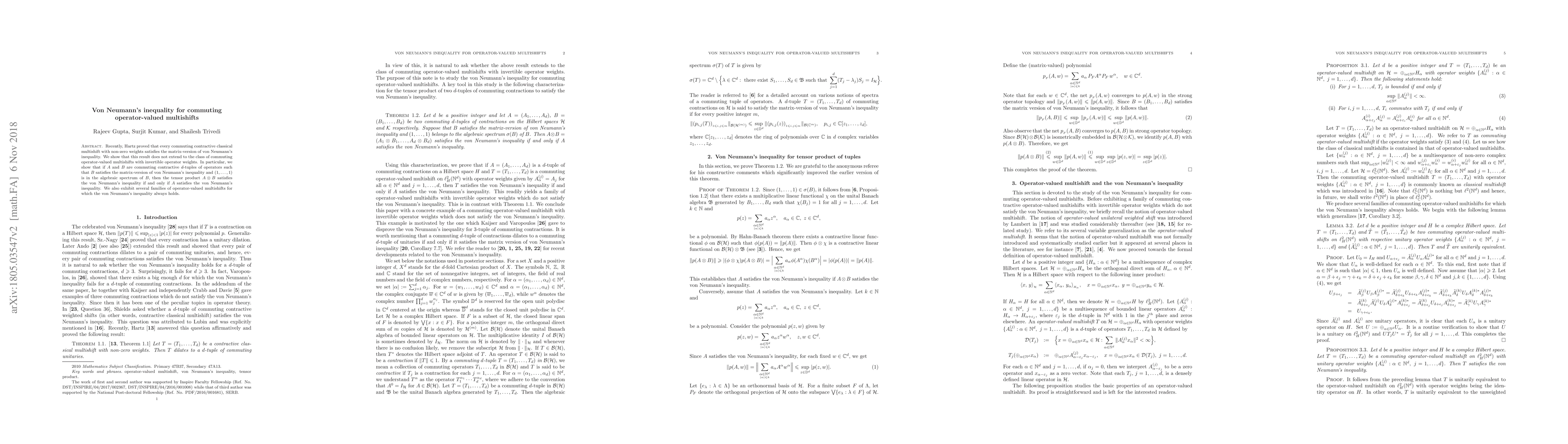 This paper demonstrates that Hartz's extension of von Neumann's inequality to commuting contractive classical multishifts does not apply to operator-valued multishifts with invertible operator weights. It concludes that the tensor product of commuting contractive operator tuples satisfies von Neumann's inequality if and only if the individual tuple does.