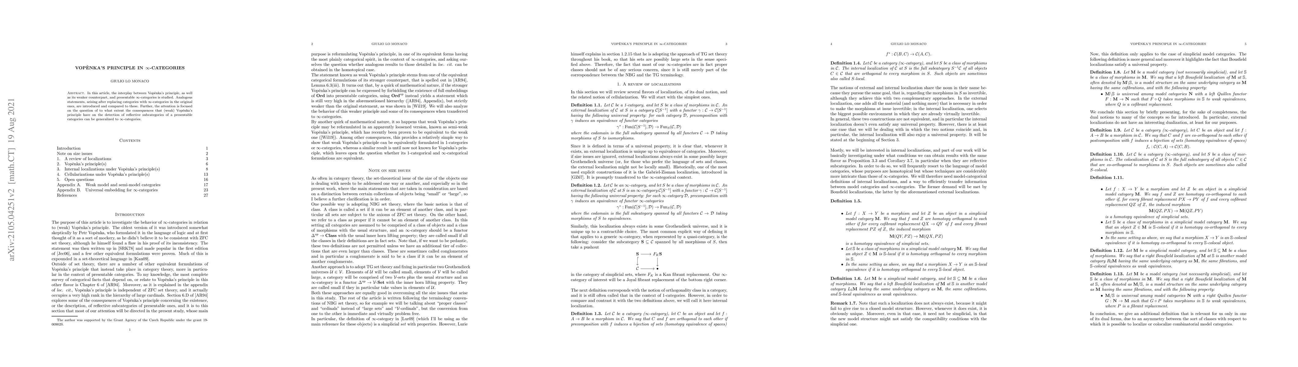 This work is novel in its systematic exploration of Vopěnka's principle and its weaker variant in the setting of ∞-categories, bridging classical category theory with modern higher categorical methods.