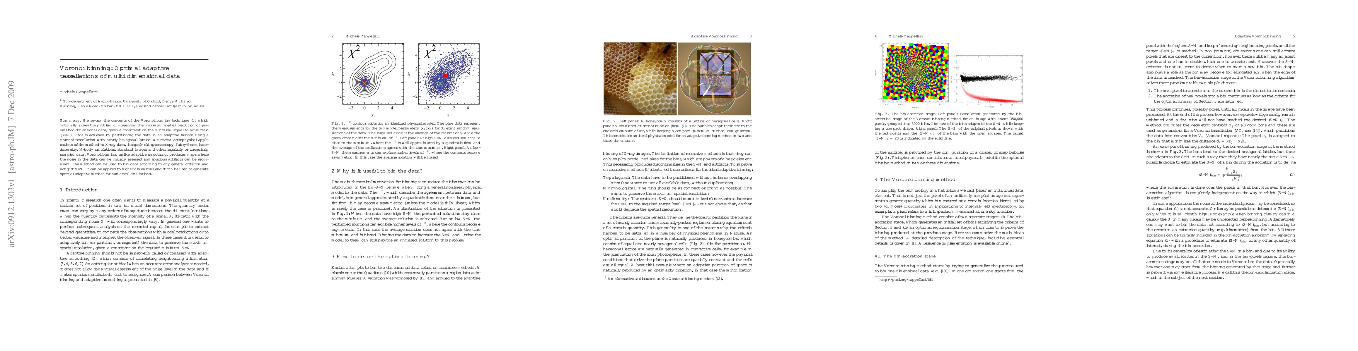 We review the concepts of the Voronoi binning technique (Cappellari & Copin 2003), which optimally solves the problem of preserving the maximum spatial resolution of general two-dimensional data, given a constraint on the minimum signal-to-noise ratio (S/N). This is achieved by partitioning the data in an adaptive fashion using a Voronoi tessellation with nearly hexagonal lattice. We review astrophysical applications of the method to X-ray data, integral-field spectroscopy, Fabry-Perot interferometry, N-body simulations, standard images and other regularly or irregularly sampled data. Voronoi binning, unlike adaptive smoothing, produces maps where the noise in the data can be visually assessed and spurious artifacts can be recognized. The method can be used to bin data according to any general criterion and not just S/N. It can be applied to higher dimensions and it can be used to generate optimal adaptive meshes for numerical simulations.